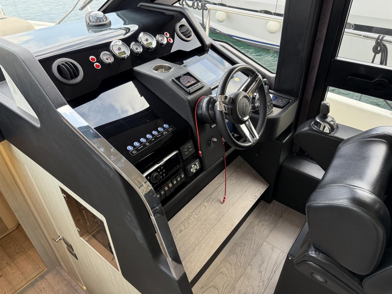 Rudder angle indicator, Radar Antenna, Electronic engine control, On-Board Computer, DSC vhf, Joystick, Plotter with GPS antenna, Co-pilot seat, Yacht controller (TERZA STAZIONE A POPPA).