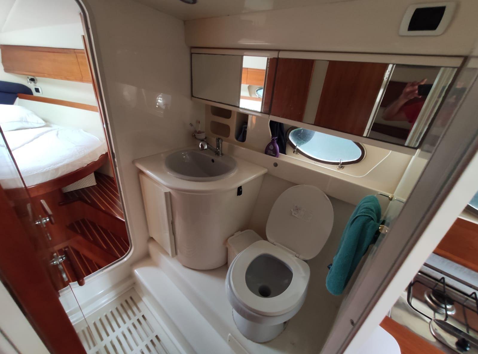 Engine Alarm, Bilge Alarm, Alternator, Water pressure pump, Deck Shower, Hydraulic Flaps, Fire Extinguishing System, Courtesy Lights, Gangway (IDRAULICA), Platform, Automatic Bilge Pump, Manual Bilge Pump, Teak Cockpit, Shorepower connector, Electric Windlass, cockpit table, Living Room Foldable Table, Horn.