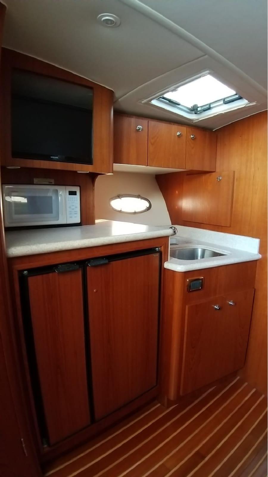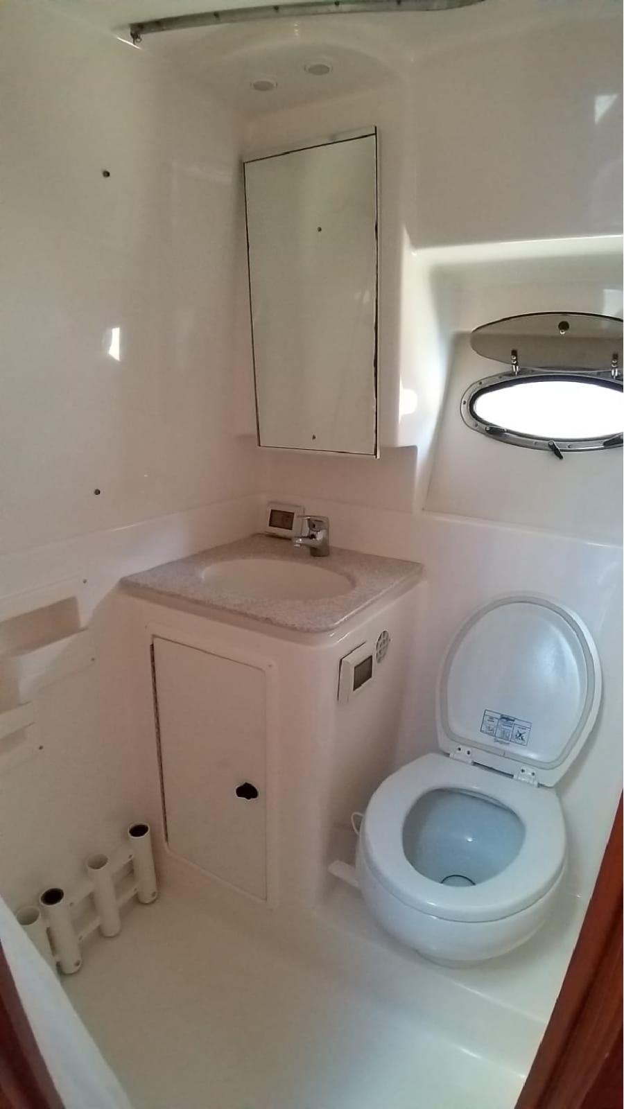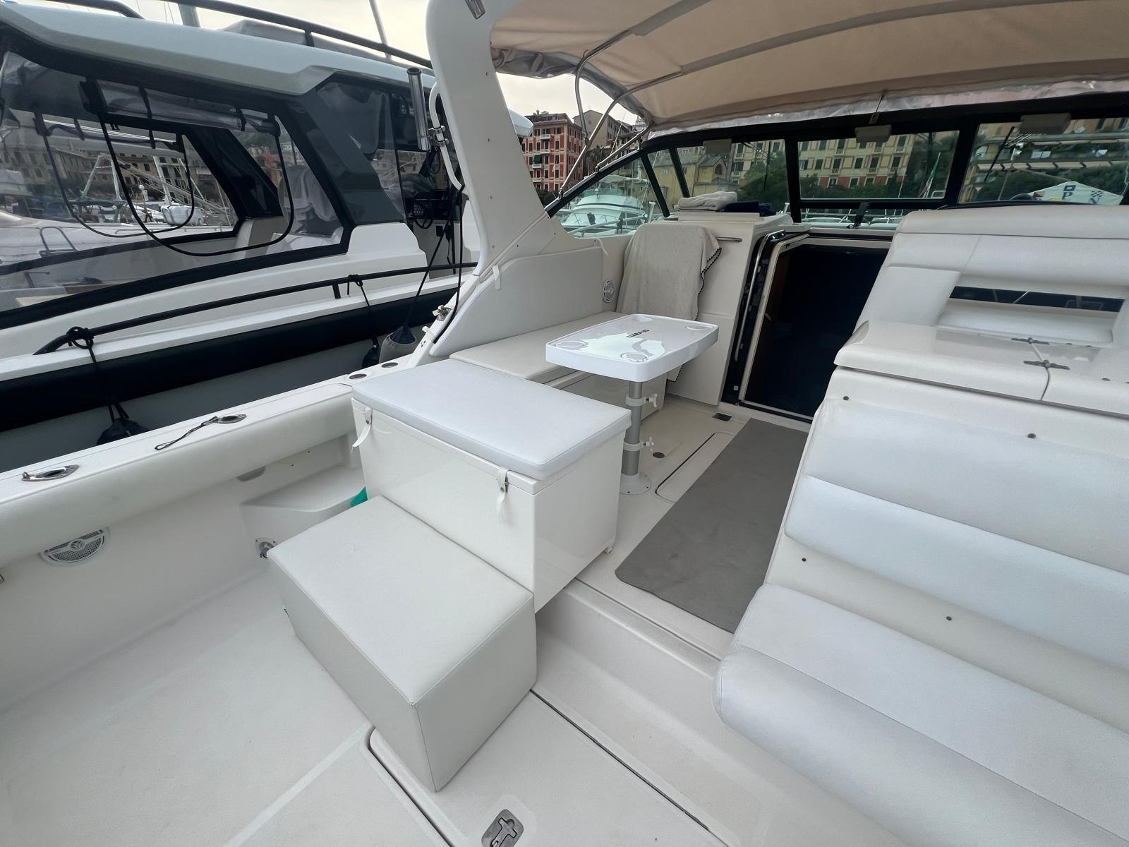 Engine Alarm, Bilge Alarm, Anchor (CON CATENA IN ACCIAIO INOX), Water pressure pump, Deck Shower, Directional Spotlight (DOPPIO), Electric Flaps, Fire Extinguishing System, Washbasin in the cockpit, Courtesy Lights, Platform, Automatic Bilge Pump, Manual Bilge Pump, Entry door (SPECCHIO POPPA), Shorepower connector, Rollbar, Electric Windlass, swimming ladder, cockpit table, Horn.