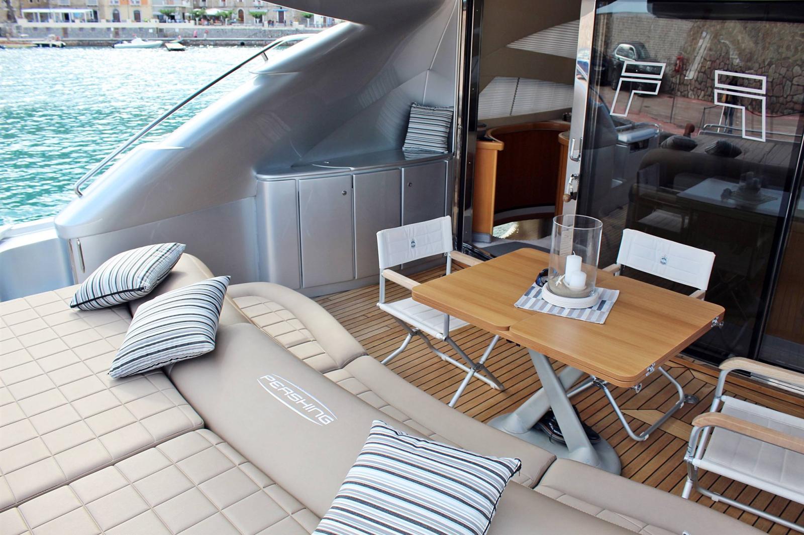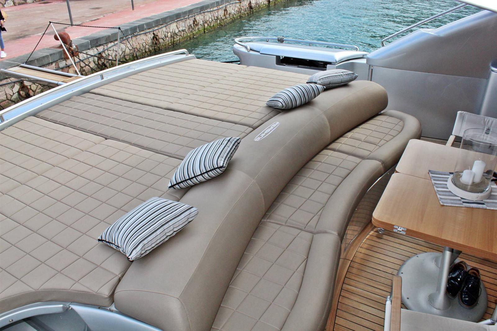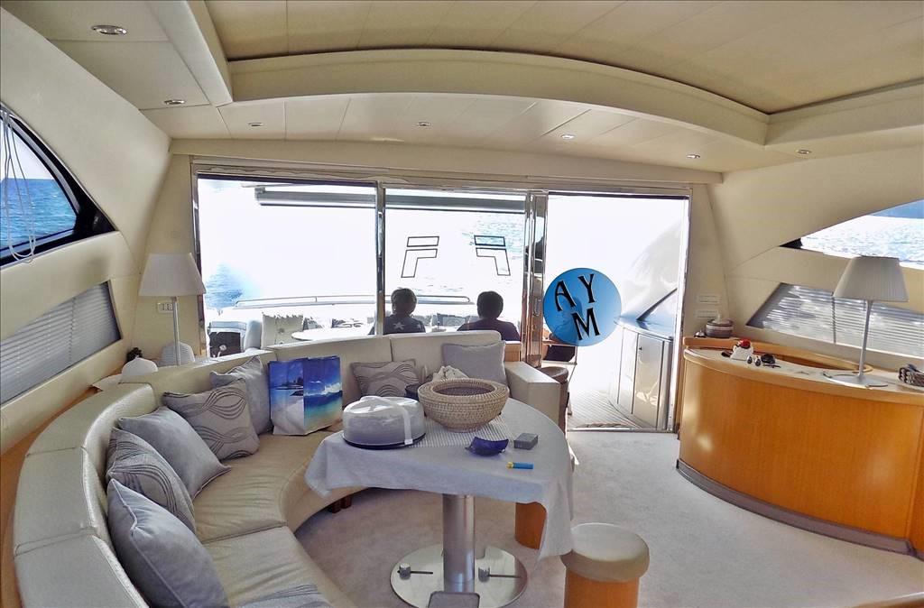 Bilge Alarm, Water pressure pump, 14 Batteries, Teak Side Decks, Special Colour, Deck Shower, Tender Garage, Crane, Hard top, Flaps Indicators, Courtesy Lights, Gangway (IDRAULICA), Platform, Automatic Bilge Pump, Manual Bilge Pump, Entry door, Side door, Teak Cockpit, Shorepower connector, Water harbor connector system, Electric Windlass, cockpit table.