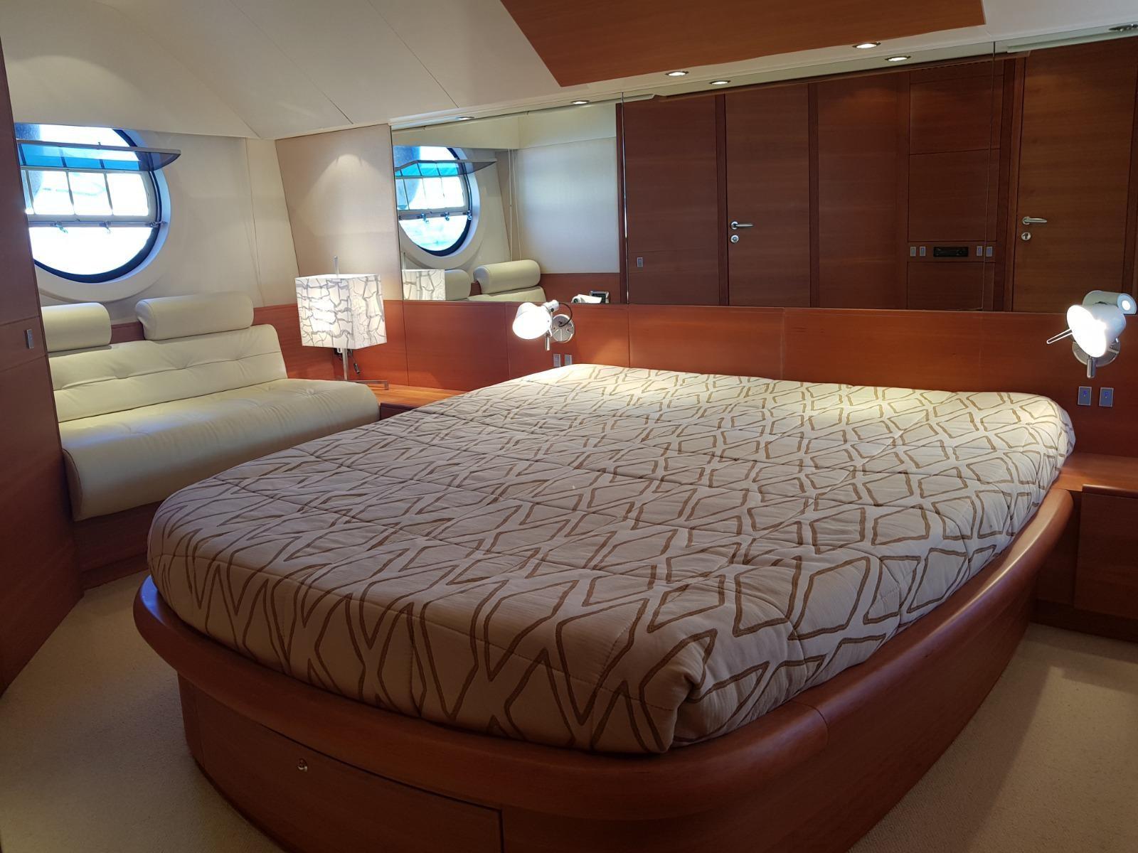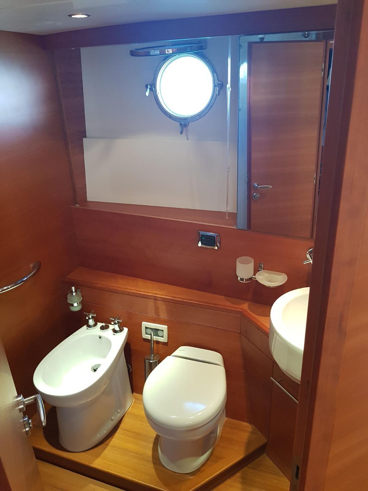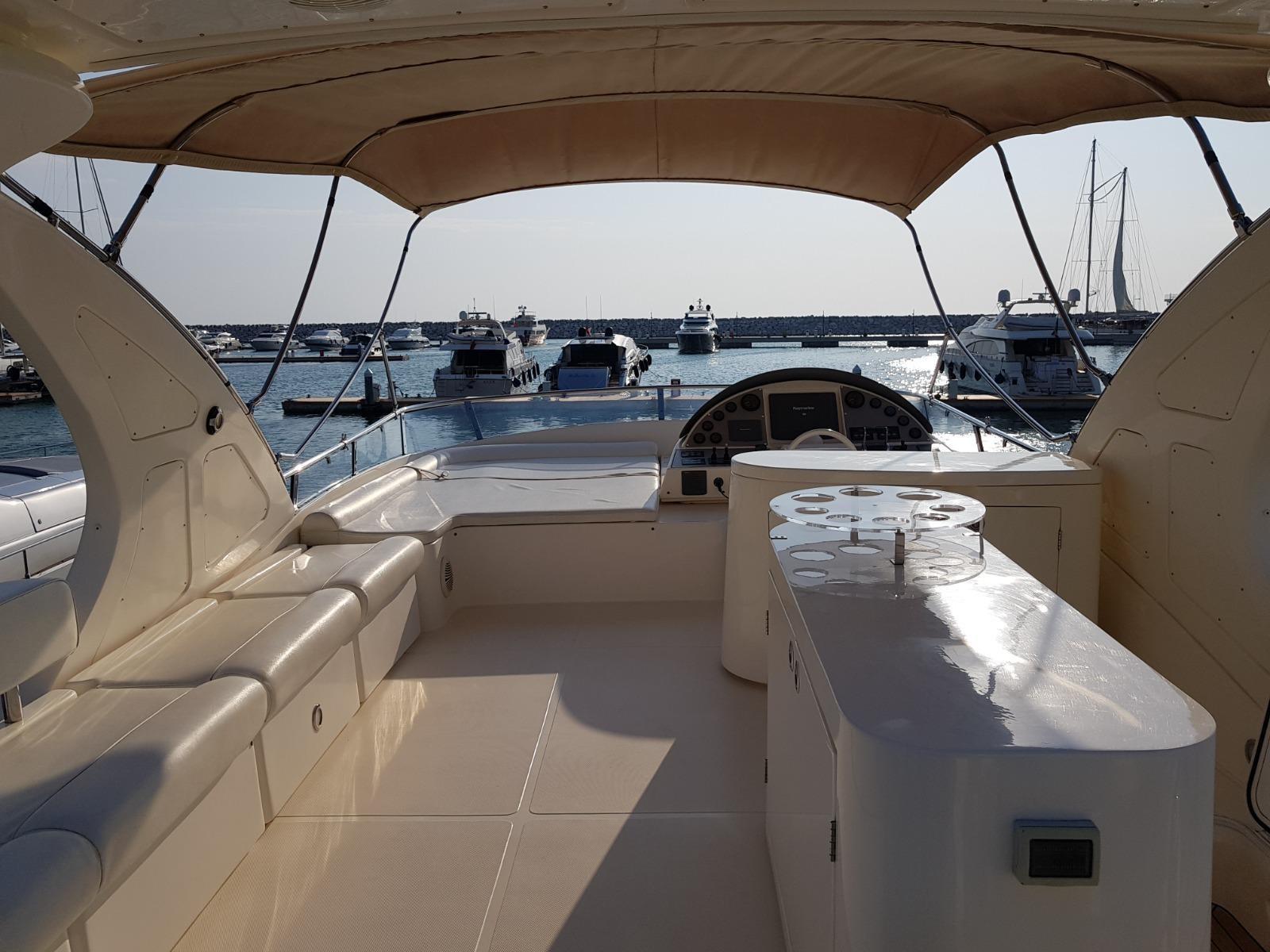 Engine Alarm, Bilge Alarm, Alternator, Water pressure pump, Deck Shower, Electric Flaps, Anchor Chain Washdown, Washbasin in the cockpit, Courtesy Lights, Underwater lights, Gangway (IDRAULICA), Platform, Automatic Bilge Pump, Entry door, Side door, Teak Cockpit, Shorepower connector, Voltage Rectifier, Rollbar, Electric Windlass, swimming ladder, Saddles for tender, cockpit table, guard rails with gates, Horn, Stern Winches.