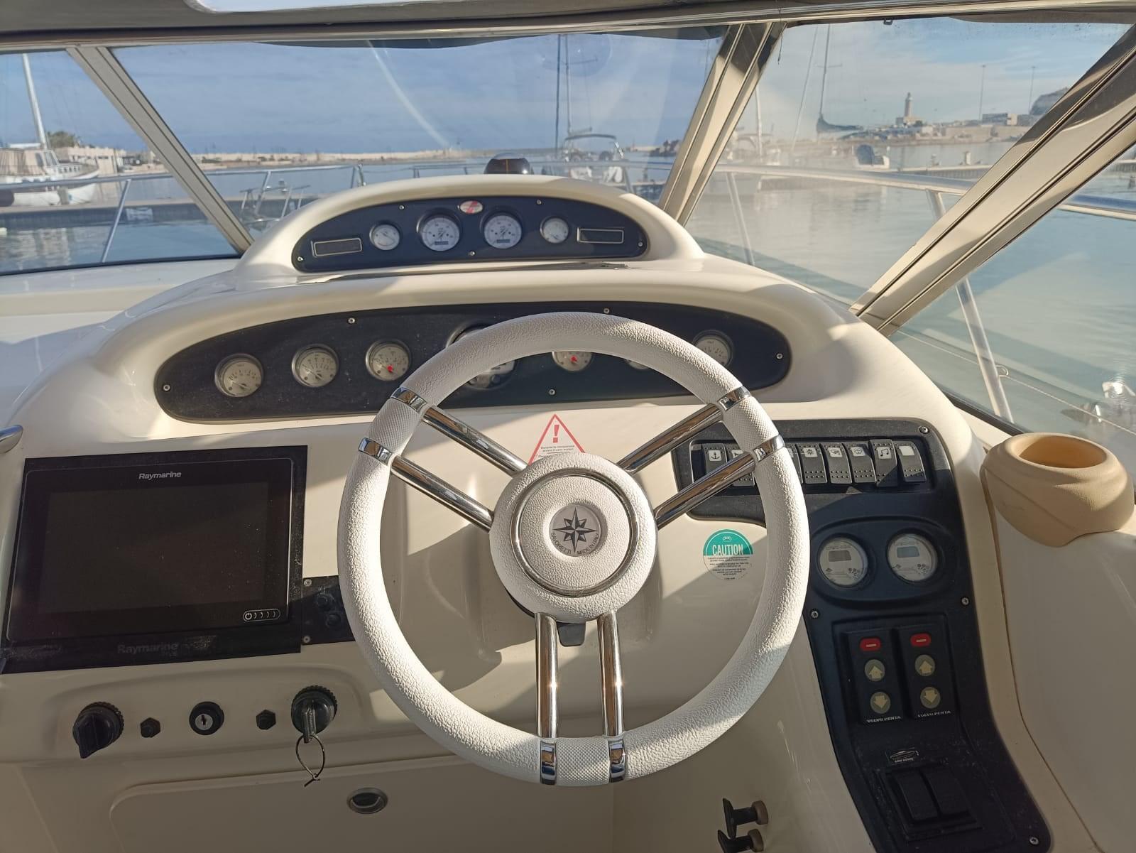 Engine Alarm, Bilge Alarm, Water pressure pump, Deck Shower, Electric Flaps, Hydraulic Flaps, Tender Garage, Platform, Automatic Bilge Pump, Teak Cockpit, Shorepower connector, Rollbar, Electric Windlass, swimming ladder, cockpit table, Living Room Foldable Table, Horn.