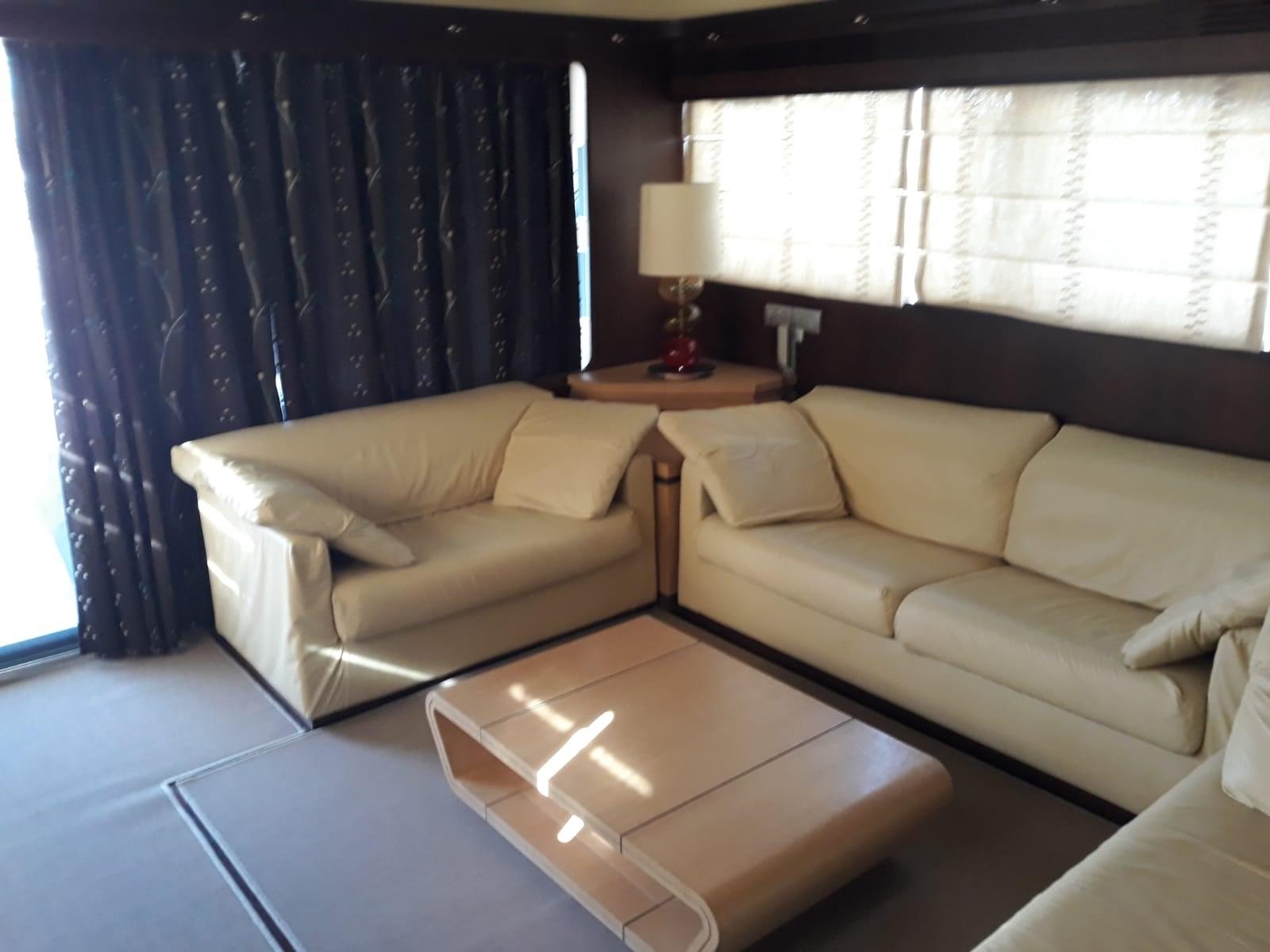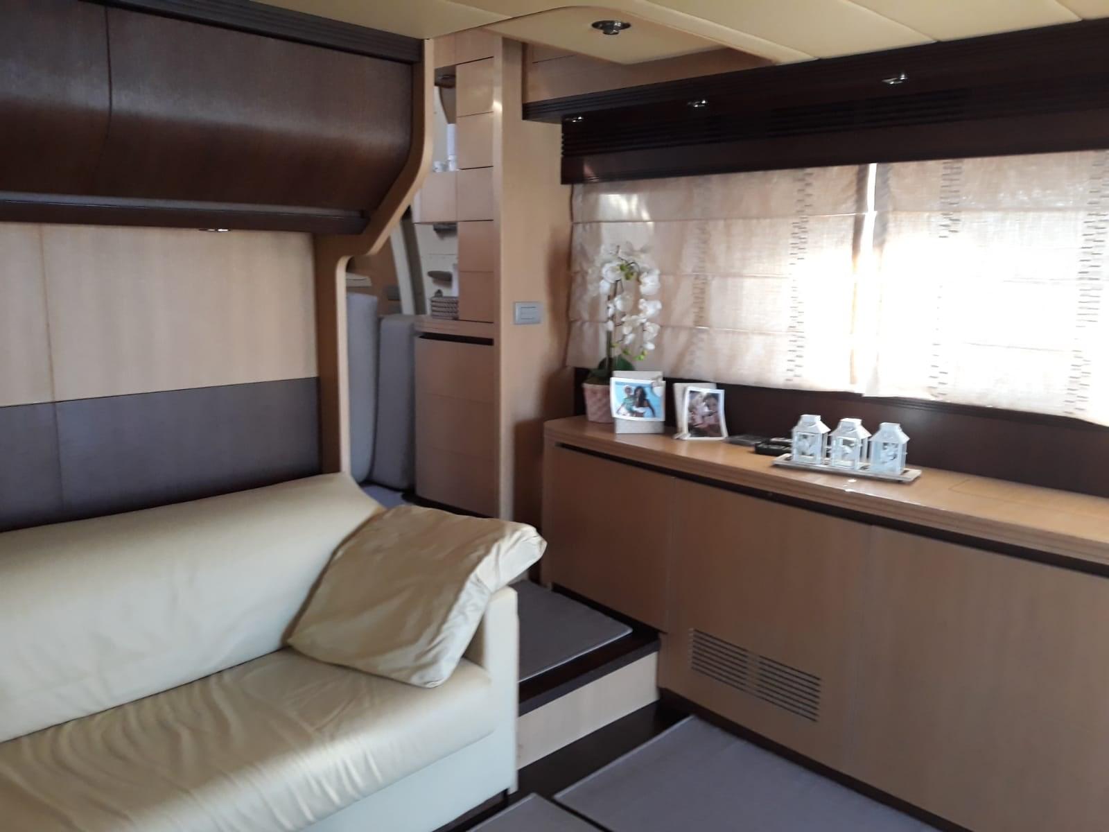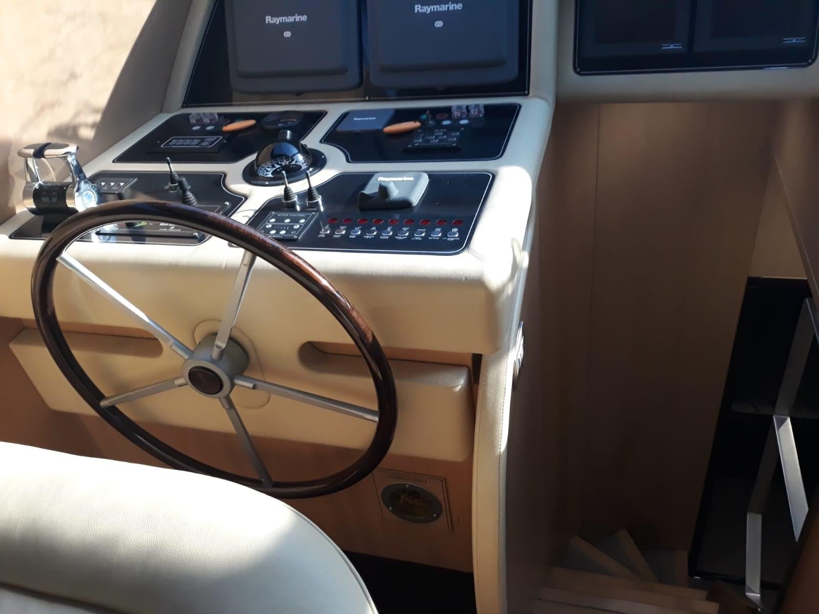 Engine alarm, Bilge alarm, Anchor, Autoclave, Self-inflatable, Batteries, Teak side walkways, Battery charger, Outdoor shower, Double wheelhouse, Echo sounder, Bow thruster, Adjustable headlight, Hydraulic flaps, Full teak, Fire extinguishing system, Intercom, Chain washing, Courtesy lights, Gangway (HYDRAULIC), Platform, Automatic bilge pump, Electric bilge pump, Manual bilge pump, Entrance door, Side door, Teak cockpit, Socket 220V dock, Rectifier, Rollbar, Electric Anchor Windlass, Bath ladder, Cockpit table, Tientibene with gates, Winch stern tonneggio, Speakers, Satellite TV antenna, Boiler, Kitchen, Complete cushions (2017), Stern cushions, Bow cushions, Fly cushions, Cockpit cushions, Satellite decoder, Digital Terrestrial, Watermaker, Oven, Internal refrigerator (N°3), Life jackets, Black water system, TV system, Microwave, Ceramic hob, 12v internal sockets, 220v internal sockets, Stereo, Interior upholstery (2017), Internal telephone, Awning, TV, Electric marine toilet