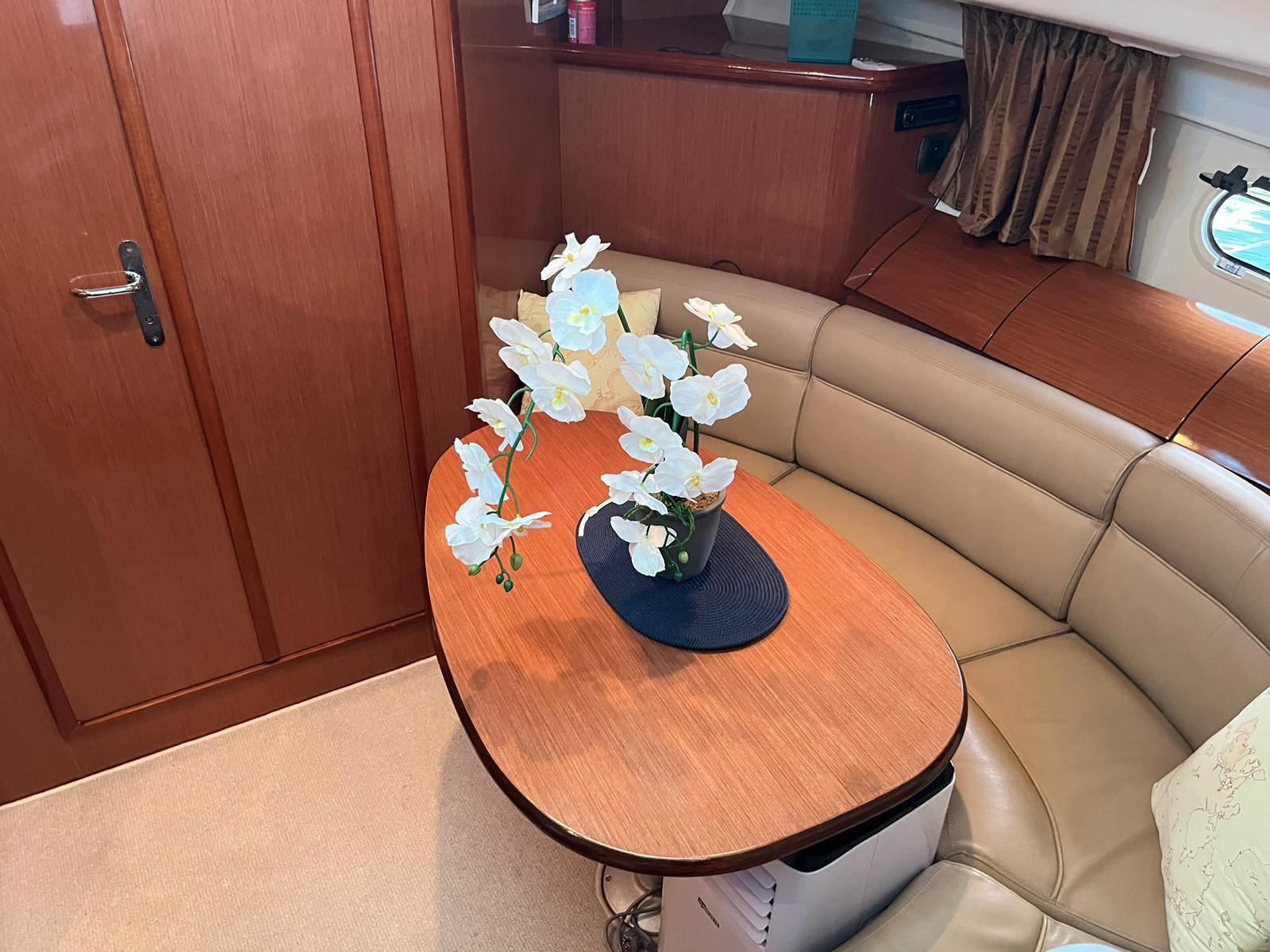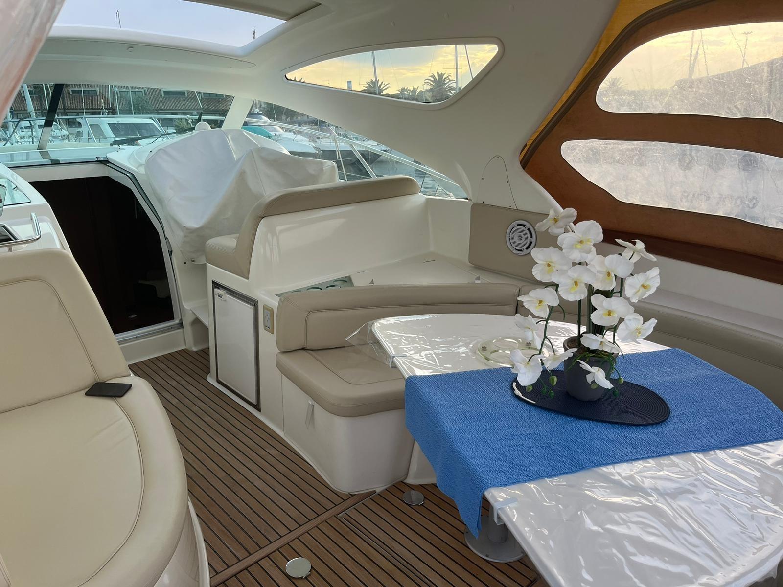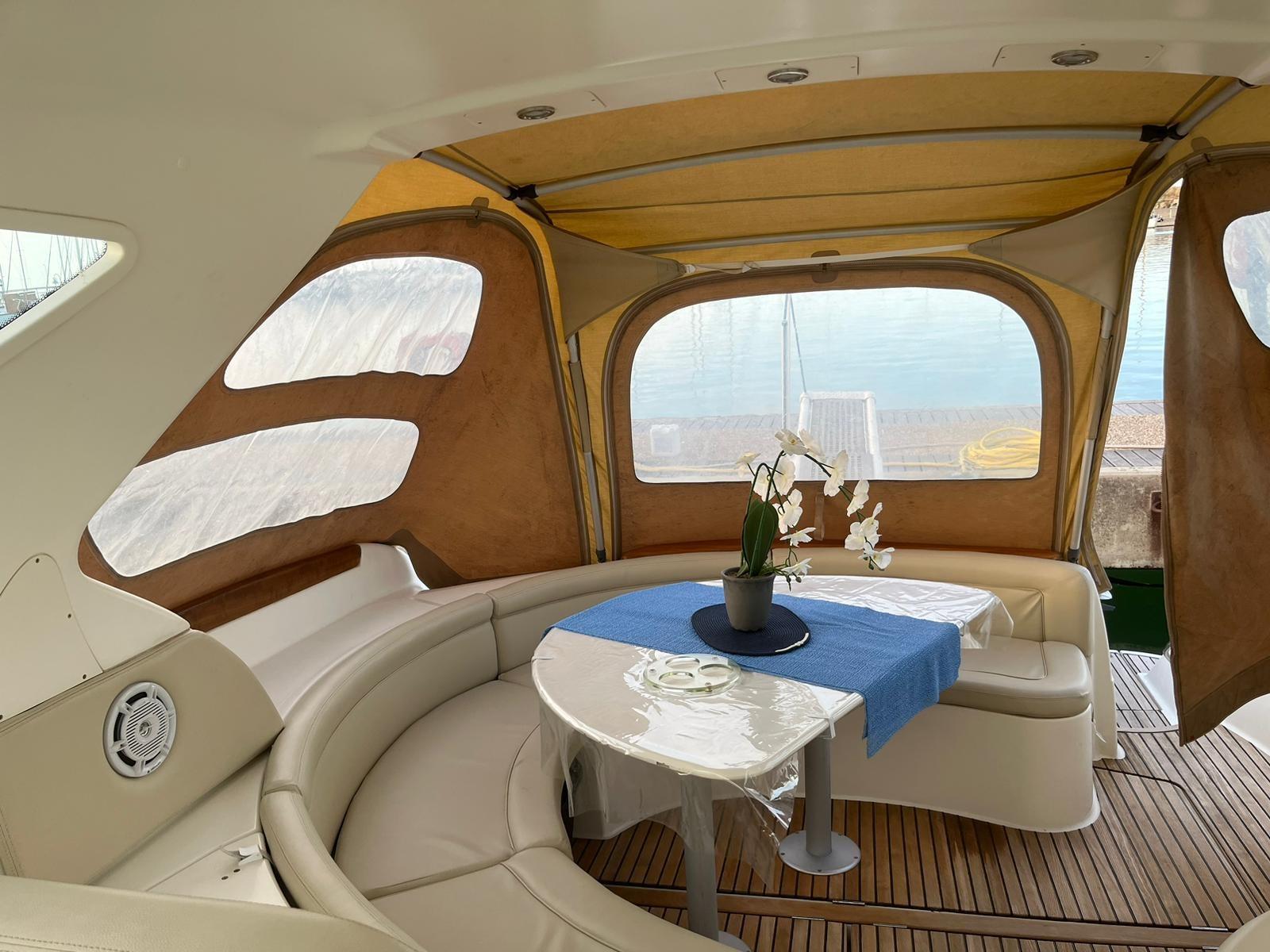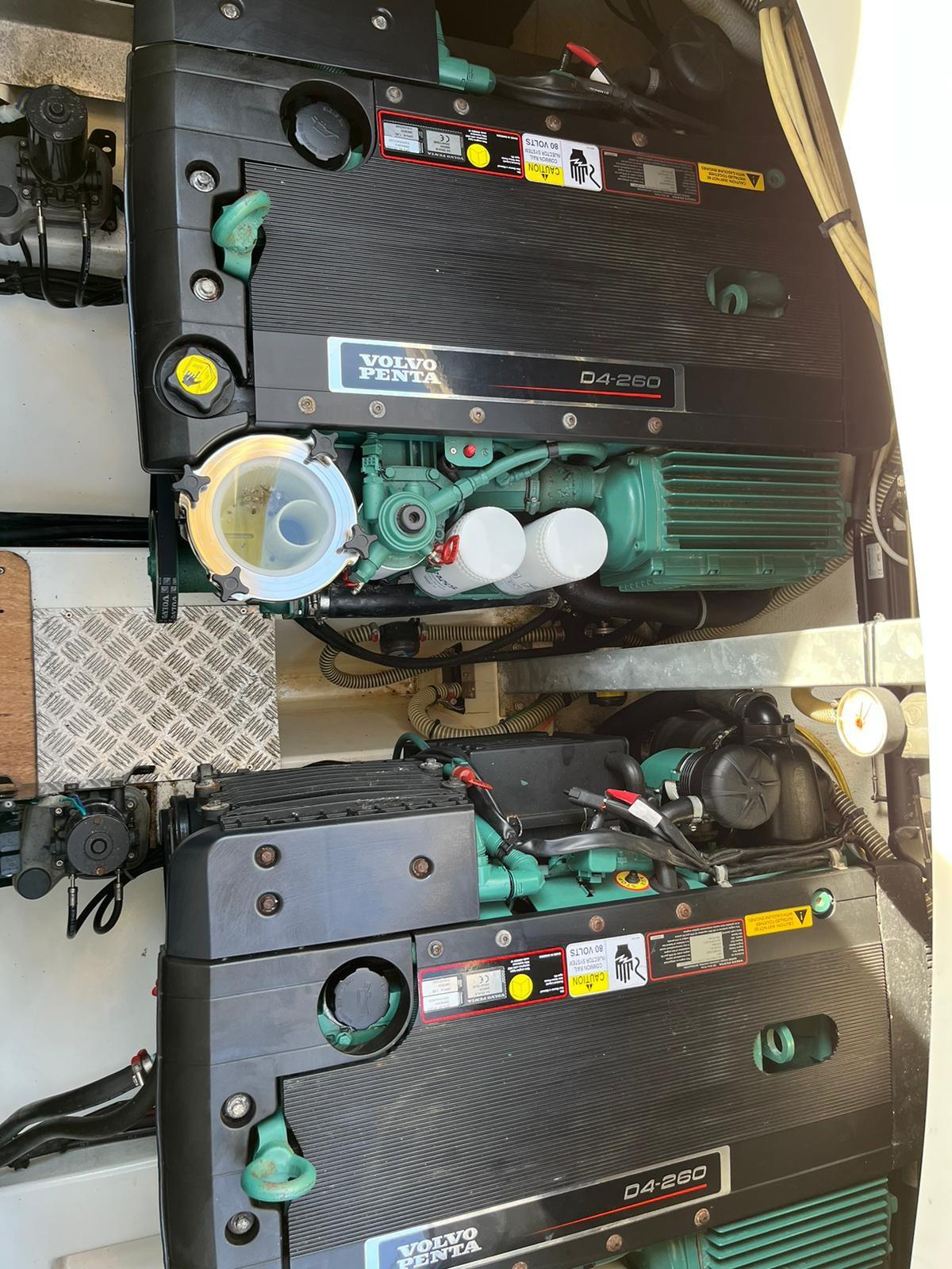 Engine Alarm, Water pressure pump, Deck Shower, Hydraulic Flaps, Hard top, Washbasin in the cockpit, Courtesy Lights, Platform, Automatic Bilge Pump, Manual Bilge Pump, Teak Cockpit, Shorepower connector, Water harbor connector system, Rollbar, Electric Windlass, Saddles for tender, cockpit table, Living Room Foldable Table, Tender, Horn.