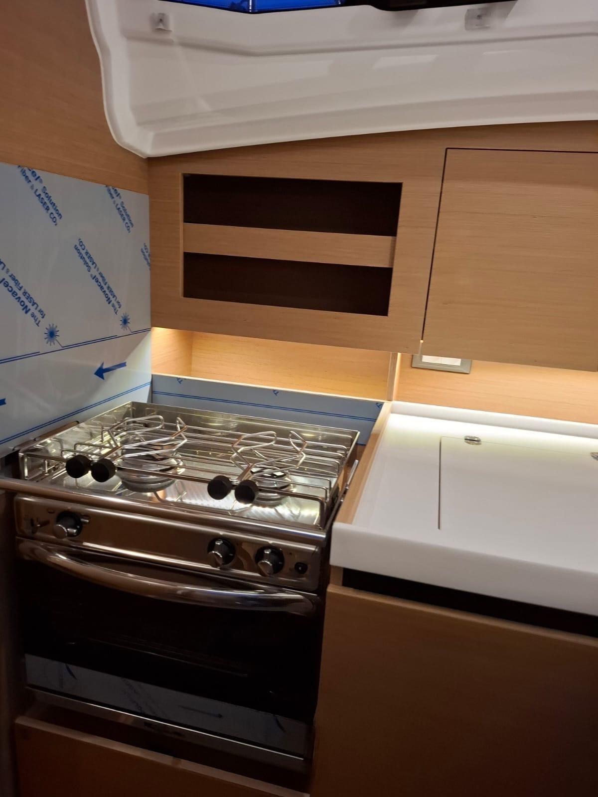 Engine Alarm, Bilge Alarm, Alternator, Deck Shower, Twin Steering, Fenders, Gangway, Platform, Automatic Bilge Pump, Manual Bilge Pump, Teak Cockpit, Shorepower connector, Electric Windlass, swimming ladder, cockpit table, Horn, Windex.