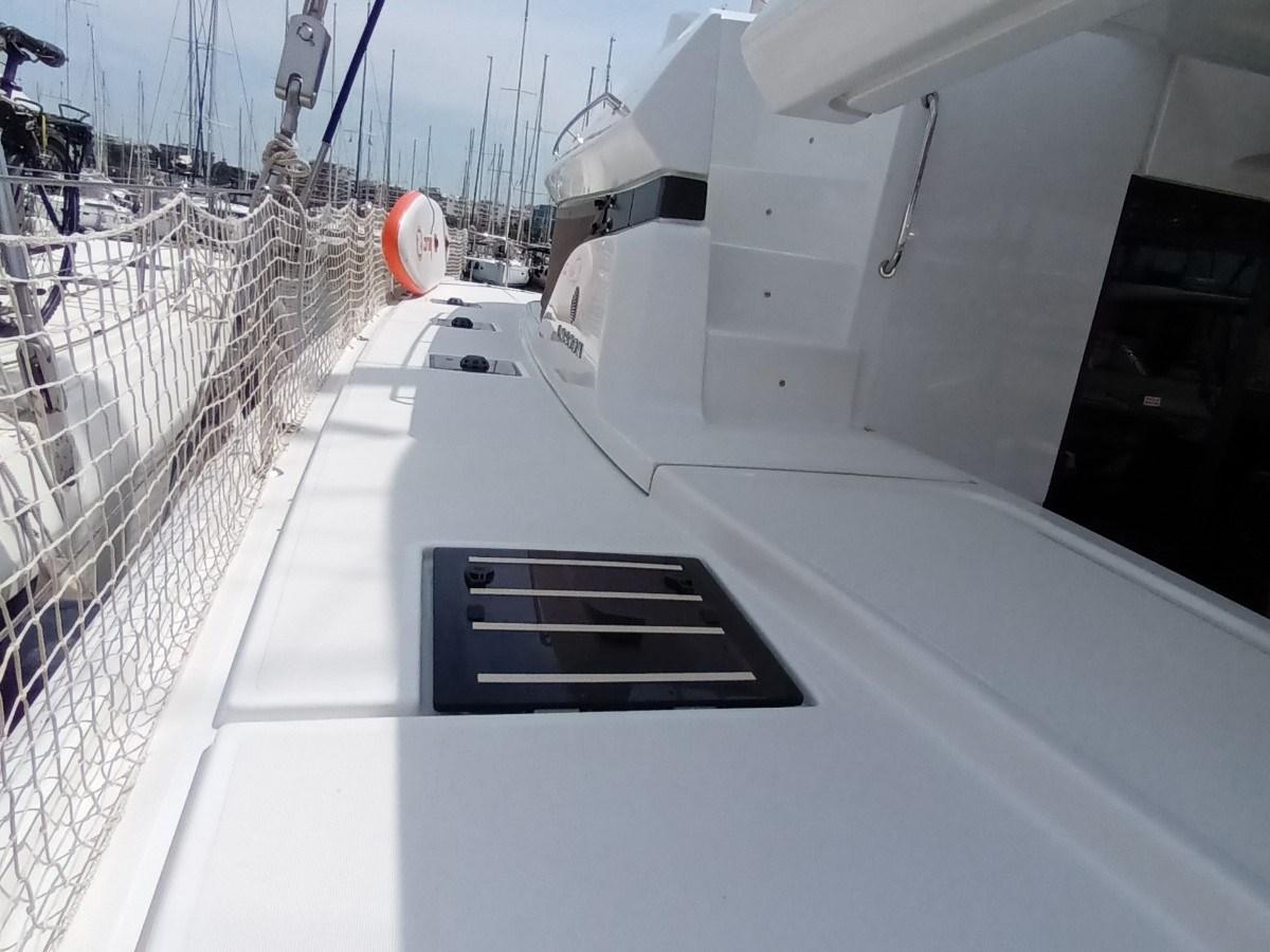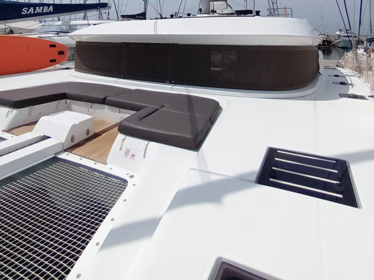 Engine Alarm, Bilge Alarm, Alternator, 2 Anchor (45kg con 90m - con 20m), Water pressure pump, Deck Shower, Tender Crane, Washbasin in the cockpit, Outboard engine for tender (6 hp), Gangway (idraulica), Automatic Bilge Pump, Entry door, Teak Cockpit, Shorepower connector, Water harbor connector system, Electric Windlass, Strand rigging, swimming ladder, cockpit table, Tender (3.60m), Windex.