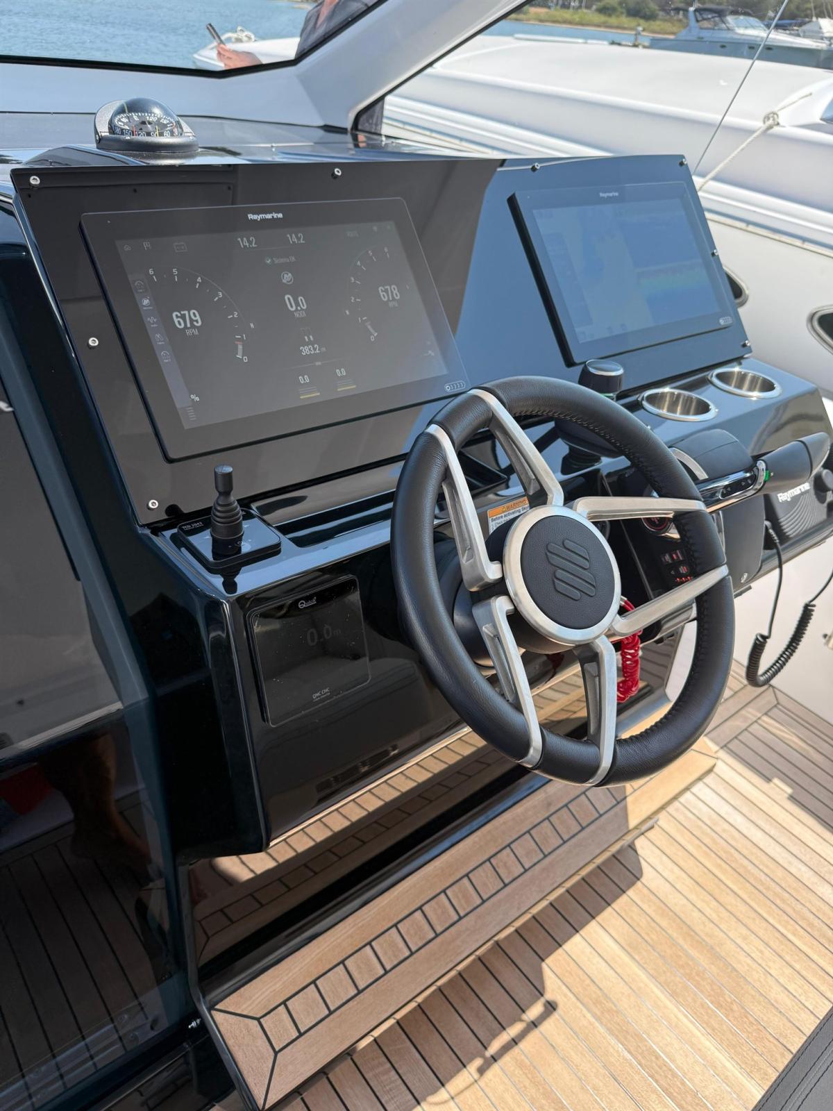 Rudder angle indicator, On-Board Computer, Chain counter, Display, Joystick, Plotter with GPS antenna (RAYMARINE n. 2 monitor da 16"), Co-pilot seat.