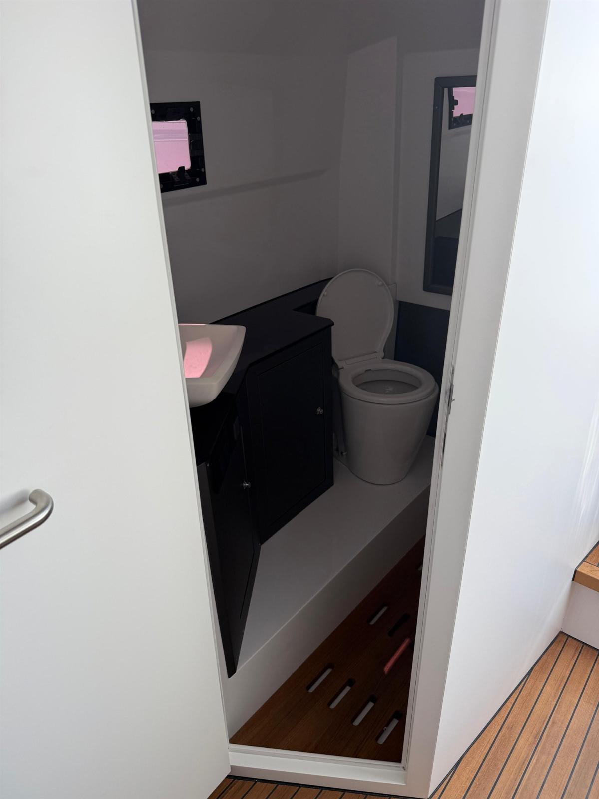 Engine Alarm, Bilge Alarm, Alternator, Anchor (e catena in inox), Water pressure pump, Folding cleats, Teak Side Decks, Shore power cable, Deck Shower, Washbasin in the cockpit, Courtesy Lights, Underwater lights, Platform, Automatic Bilge Pump, Manual Bilge Pump, Teak deck, Teak Cockpit, Shorepower connector, Electric Windlass, swimming ladder (+ seconda scaletta aggiuntiva), cockpit table, Horn, T-Top (con prolunga in carbonio).