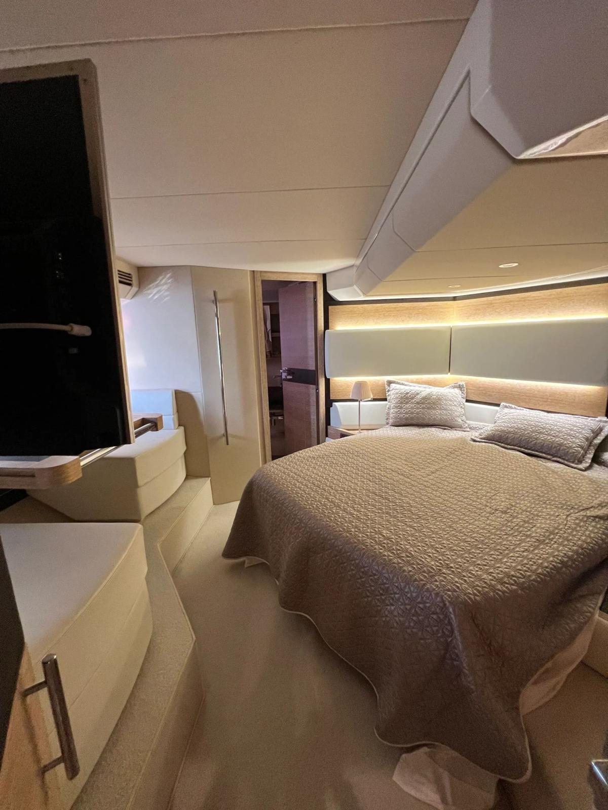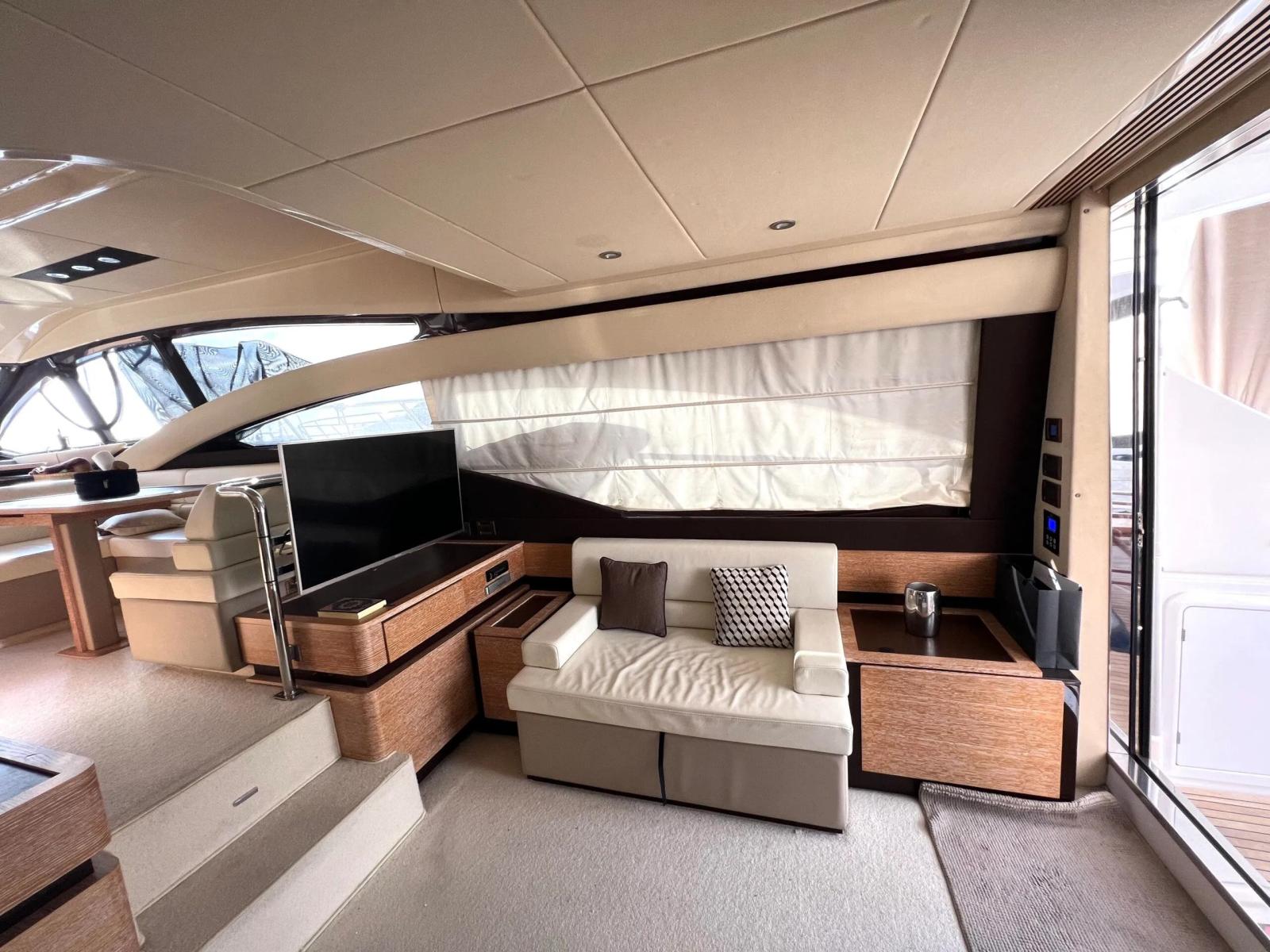 The 2017 Azimut 60 perfectly combines elegance and performance. With its sleek, modern design, this luxury yacht offers an ideal balance of spaciousness, agility, and brightness. Thanks to its large windows, every corner is flooded with natural light, creating a warm and welcoming atmosphere. Whether you are cruising open waters or hosting an intimate gathering, the Azimut 60 ensures a sophisticated experience.