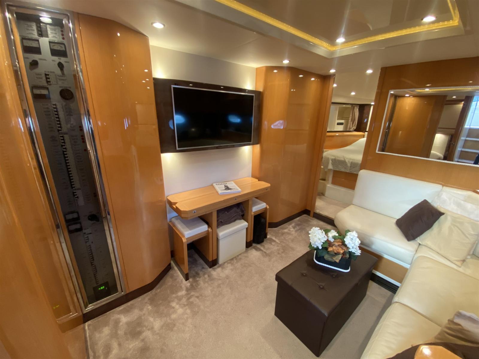 Engine Alarm, Bilge Alarm, Anchor (CATENA IN ACCIAIO INOX), Water pressure pump, Deck Shower, Hydraulic Flaps, Hard top (ELETTRICO), Fire Extinguishing System, Flaps Indicators, Courtesy Lights, Underwater lights, Gangway (IDRAULICA), Platform, Automatic Bilge Pump, Manual Bilge Pump, Teak Cockpit, Shorepower connector, Electric Windlass, swimming ladder, Saddles for tender, cockpit table, Horn, Stern Winches, Bow Winches.