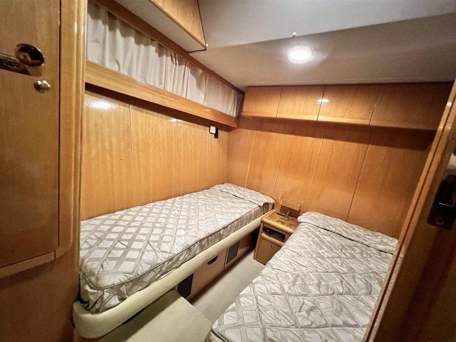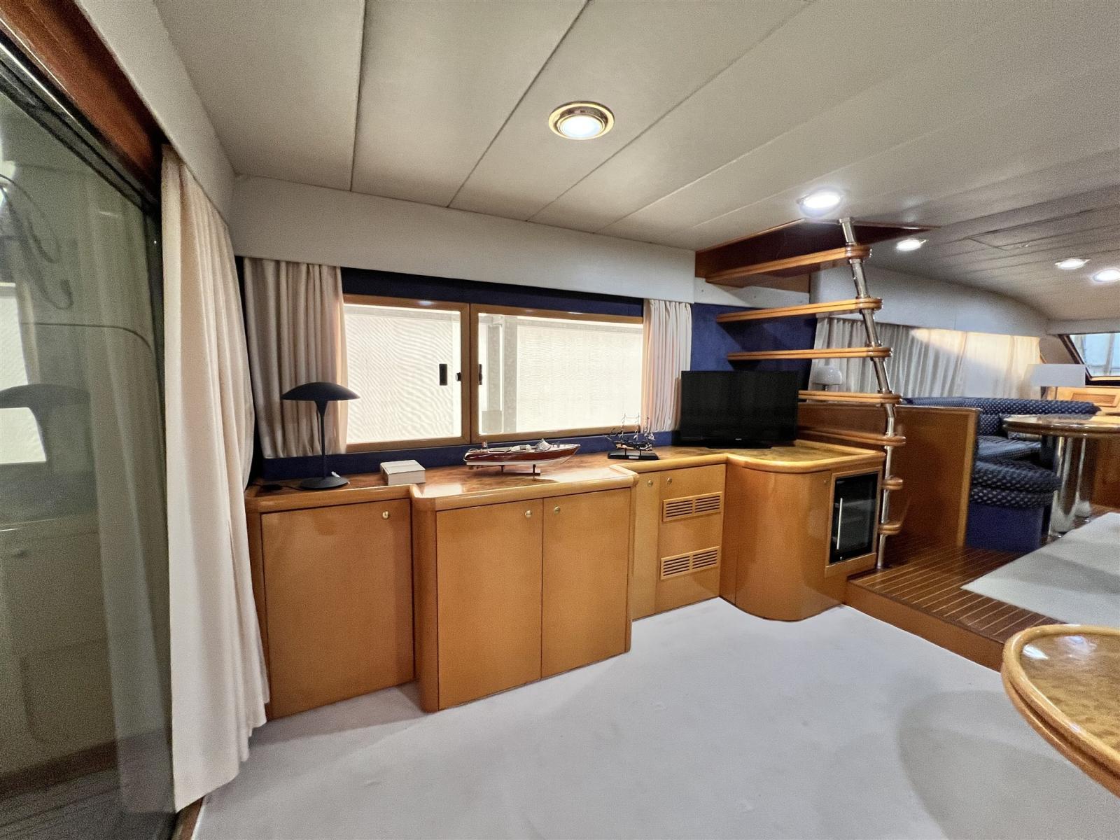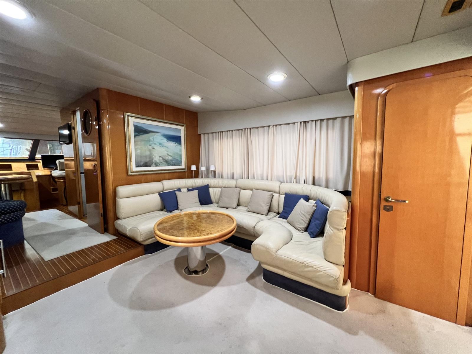 Engine Alarm, 2 Spare shaft, Water pressure pump, Batteries (2022), Teak Side Decks, 2 Battery charger (2022), Deck Shower, Stern Thruster (revisionata), Bow Thruster (revisionata), Directional Spotlight, Hydraulic Flaps, Fire Extinguishing System, Flaps Indicators (con impianto nuovo 2022), Courtesy Lights, Gangway (telescopica), Platform, Automatic Bilge Pump, Manual Bilge Pump, Teak Cockpit, Shorepower connector, 2 Voltage Rectifier (2022), Rollbar (con fari nuovi), Electric Windlass (revisionato con catena nuova), swimming ladder, cockpit table, Tender, 3 Winch.