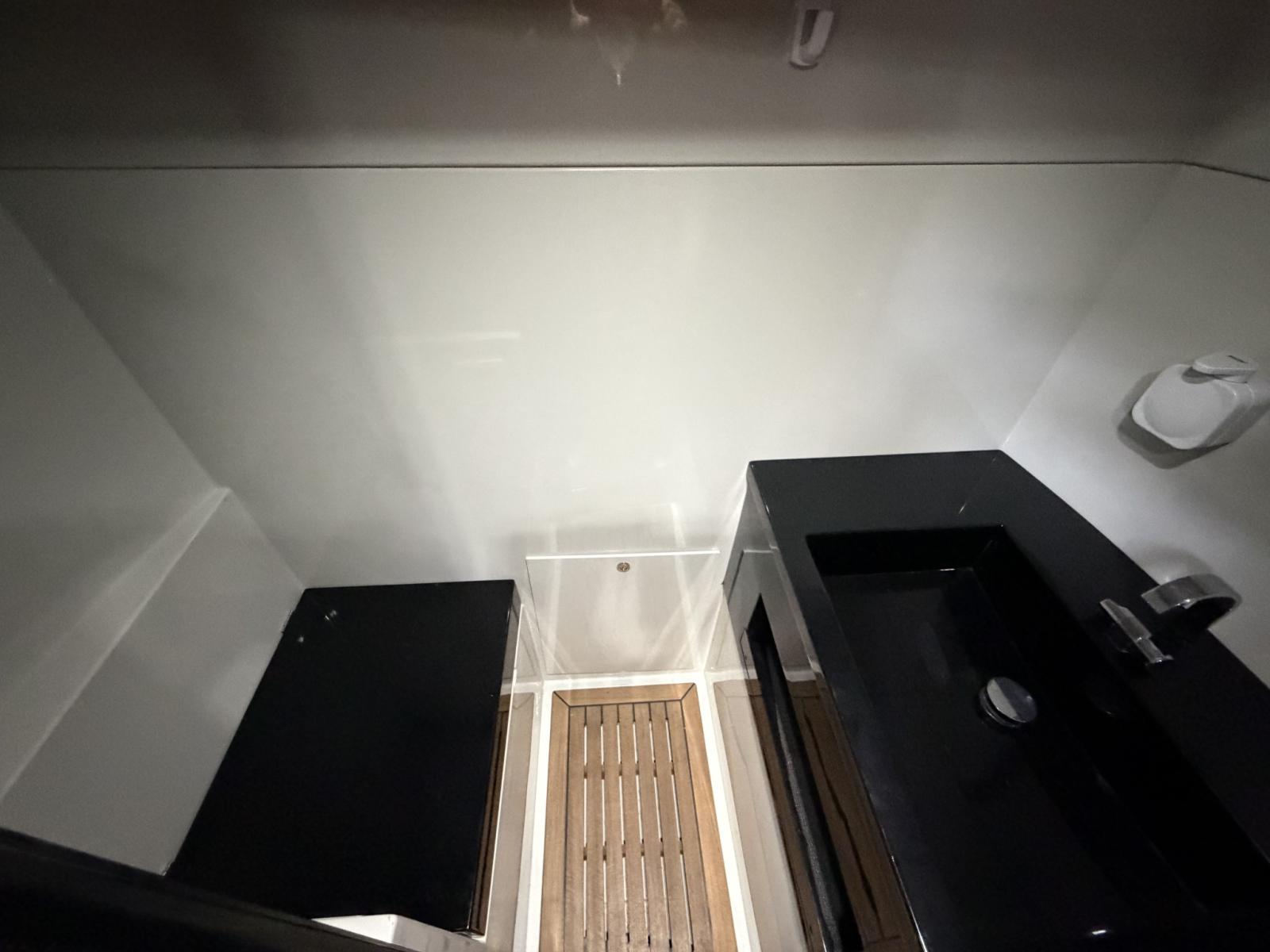 Fume/Gas Detector, Engine Alarm, Bilge Alarm, Electric Engine Compartment Opening, Teak Side Decks, Courtesy Lights, Automatic Bilge Pump, Manual Bilge Pump, Teak deck, Teak Cockpit, Shorepower connector, Water harbor connector system, Electric Windlass, swimming ladder, Horn, T-Top.