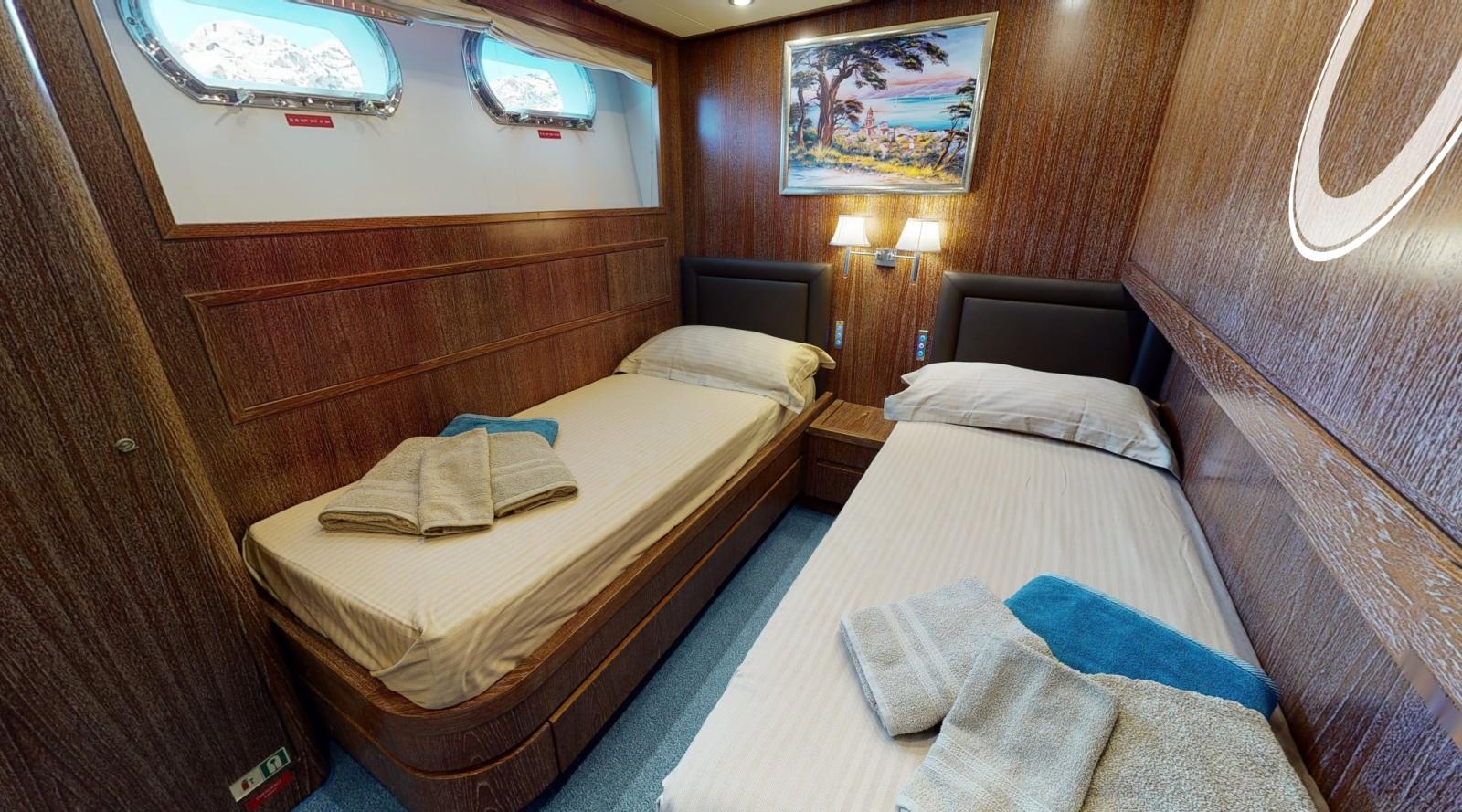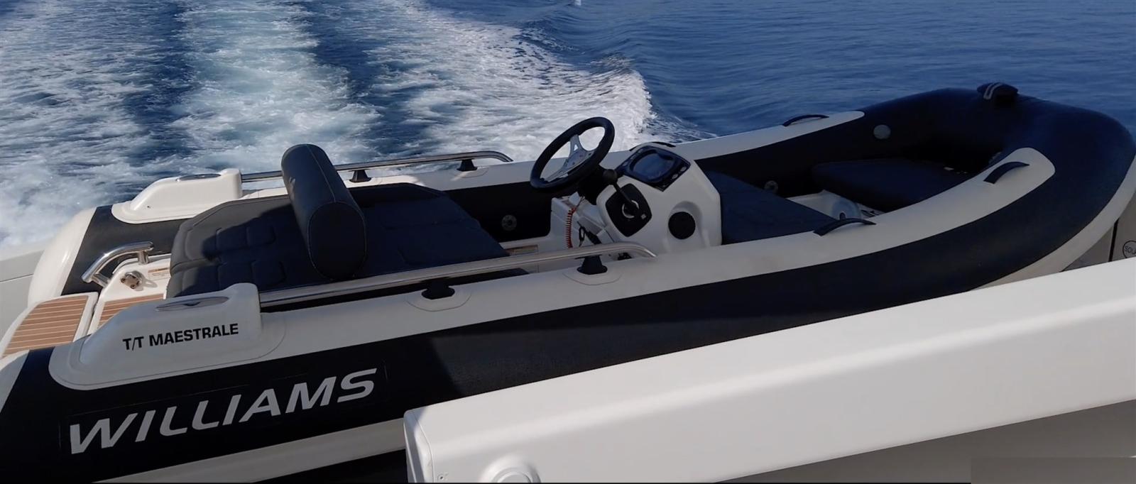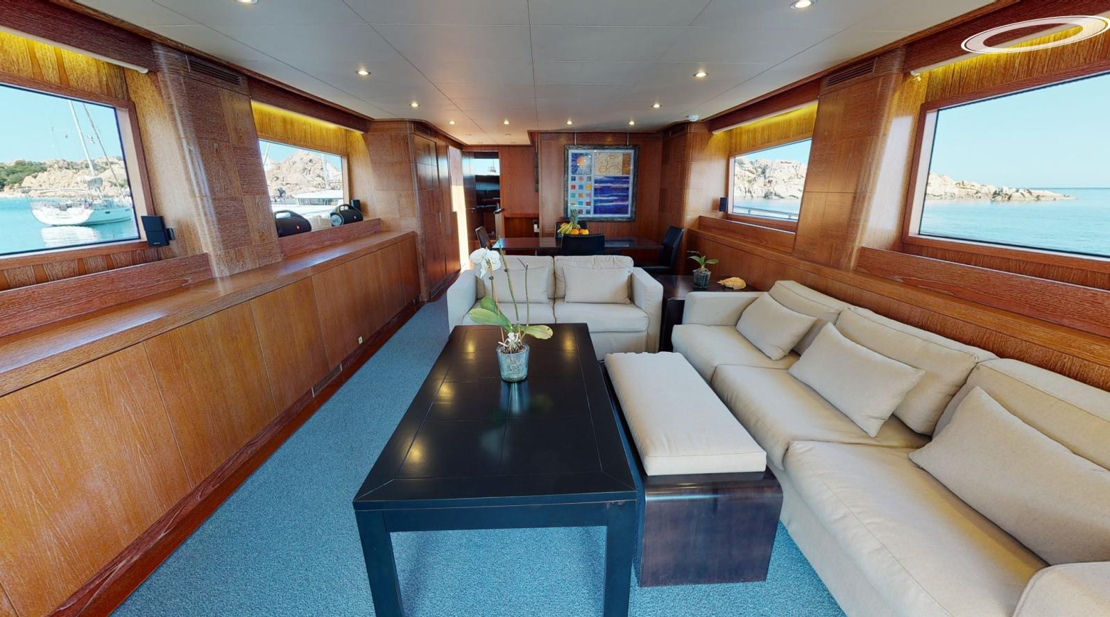 Fume/Gas Detector, Engine Alarm, Bilge Alarm, Water pressure pump, Teak Side Decks, Deck Shower, Twin Steering, Directional Spotlight, Hydraulic Flaps (N°2), Tender Crane, Fire Extinguishing System, Flaps Indicators, Anchor Chain Washdown, Washbasin in the cockpit, Courtesy Lights, Underwater lights, Gangway, Platform, Automatic Bilge Pump, Side door, Teak Cockpit, Shorepower connector, Voltage Rectifier, Hydraulic Windlass, swimming ladder, Saddles for tender, Stabilizers, cockpit table, Tender, Horn, Winch Hydraulic.