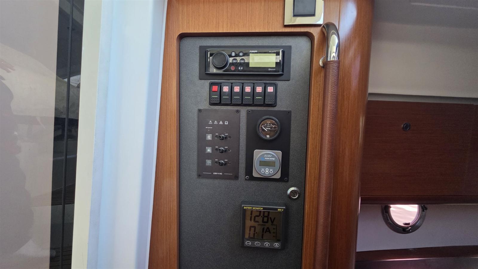Engine Alarm, Water pressure pump, Shore power cable, Deck Shower, Hydraulic Flaps, Hard top (ELETTRICO), Washbasin in the cockpit, Courtesy Lights, Battery Monitor, Gangway (IDRAULICA BESENZONI), Platform, Automatic Bilge Pump, Teak Cockpit, Shorepower connector, Water harbor connector system, Electric Windlass (1000W), swimming ladder (A SCOMPARSA), cockpit table.