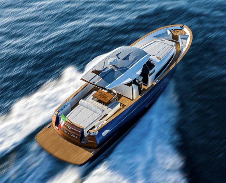 METALLIC BLUE HULL COLOR WITH EXPOSED WOODEN STERN