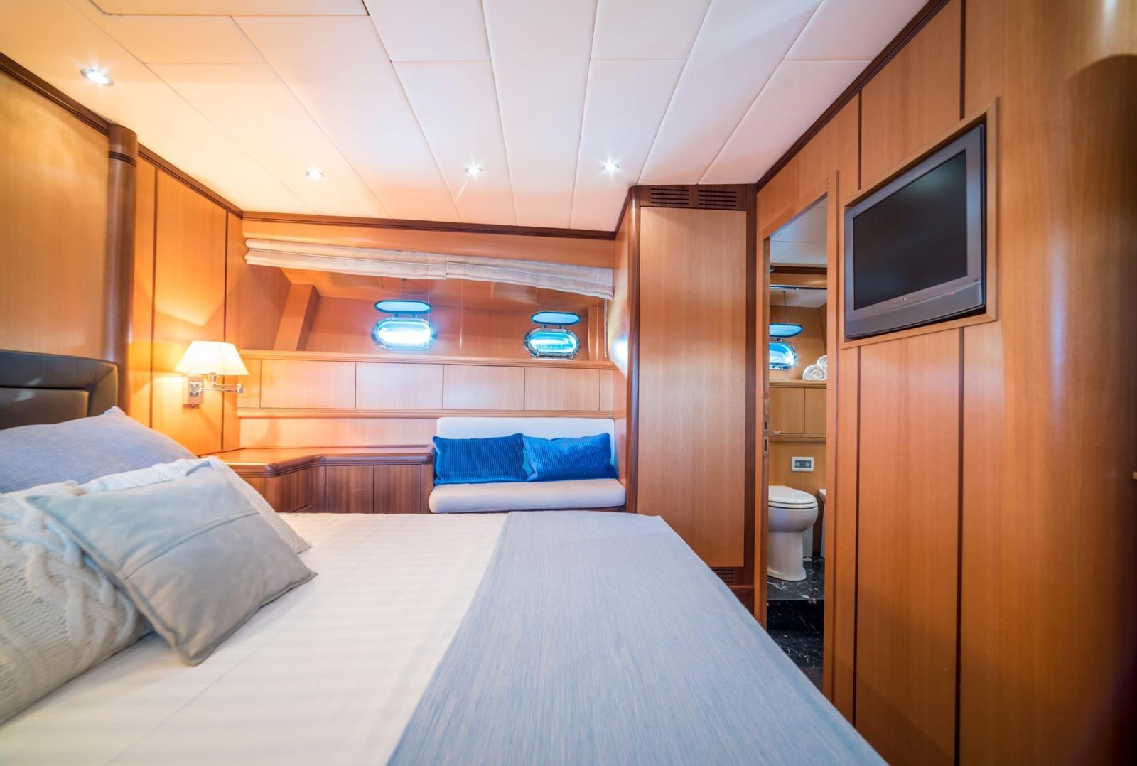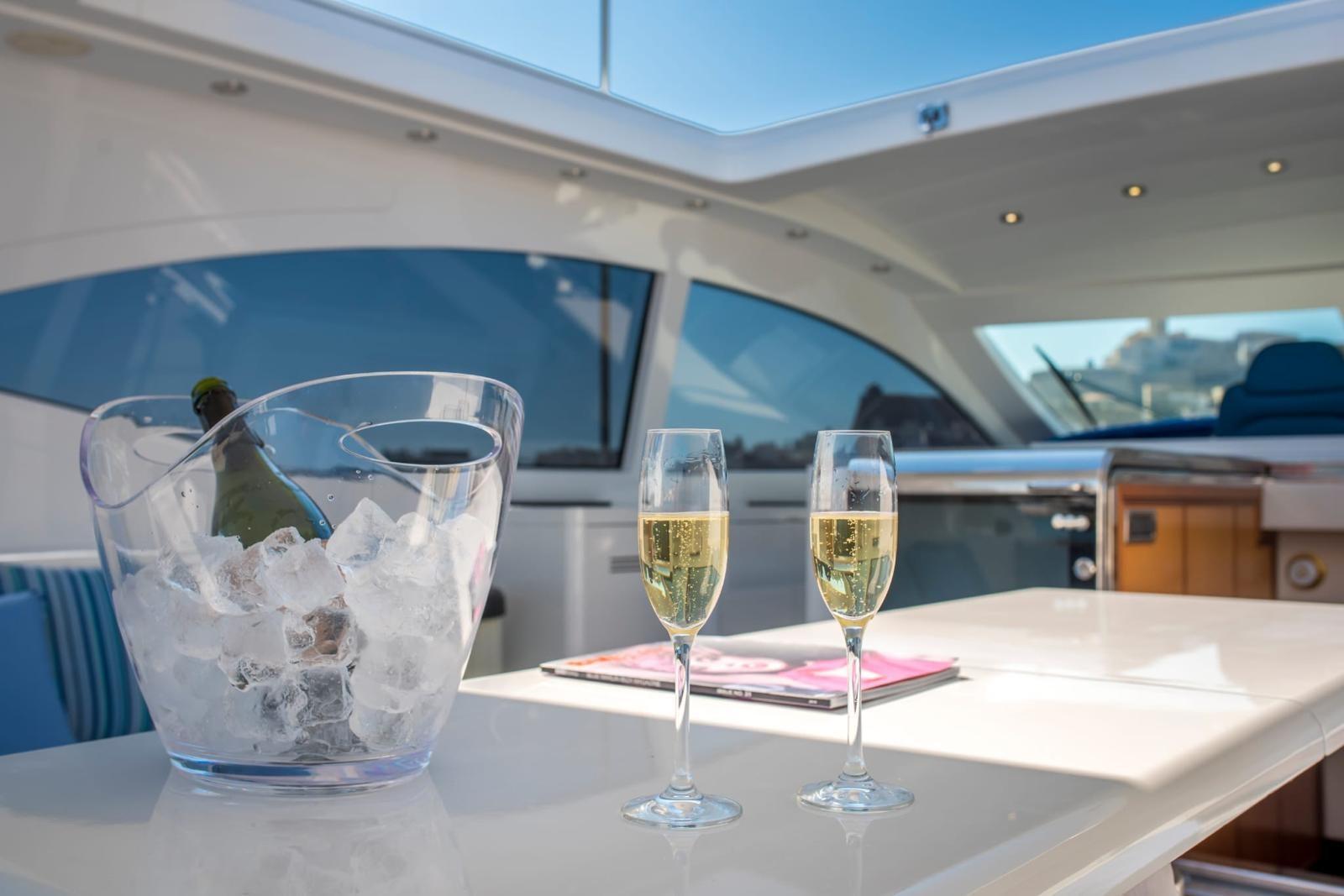 Fume/Gas Detector, Engine Alarm, Bilge Alarm, Water pressure pump, Deck Shower, Headlights fixed on the stem, Directional Spotlight, Hydraulic Flaps, Tender Garage, Hard top, Fire Extinguishing System, Flaps Indicators, Anchor Chain Washdown, Courtesy Lights, Underwater lights, Platform, Automatic Bilge Pump, Manual Bilge Pump, Teak Cockpit, Shorepower connector, Water harbor connector system, Voltage Rectifier, Electric Windlass, Hydraulic Windlass, swimming ladder, Horn, Stern Winches, Bow Winches.