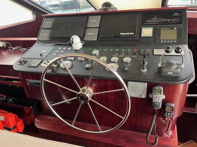 Rudder angle indicator, Radar Antenna, Electronic engine control, DSC vhf, Plotter with GPS antenna, Control panel, Co-pilot seat.