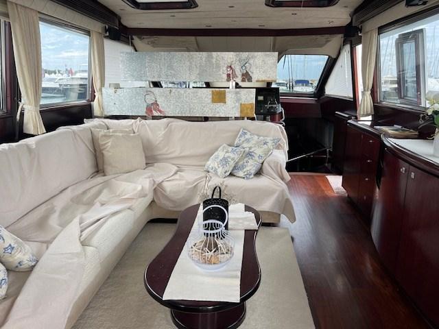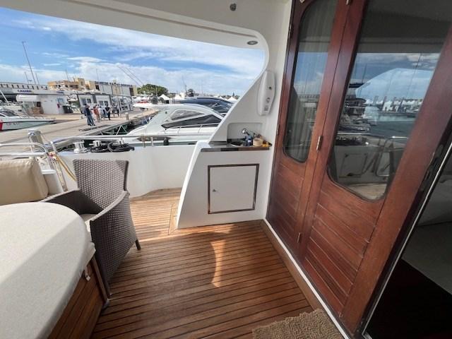 Engine Alarm, Bilge Alarm, Alternator, Water pressure pump, Teak Side Decks, Shore power cable, Special Colour, Guard rail, Deck Shower, Directional Spotlight, Hydraulic Flaps, Fire Extinguishing System, Anchor Chain Washdown, Courtesy Lights, Gangway, Platform, Automatic Bilge Pump, Deck Wash Pump, Seawater Pump, Teak deck, Entry door, Side door, Teak Cockpit, Shorepower connector, Electric Windlass, cockpit table, Tender, guard rails with gates, Horn, Stern Winches, Bow Winches.