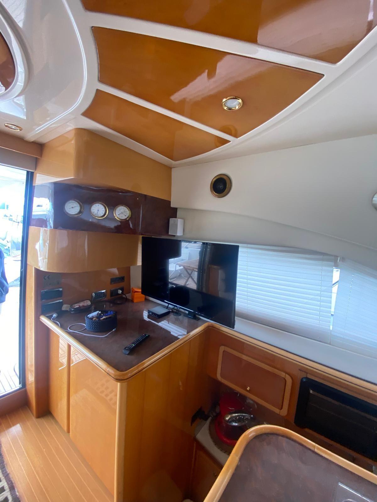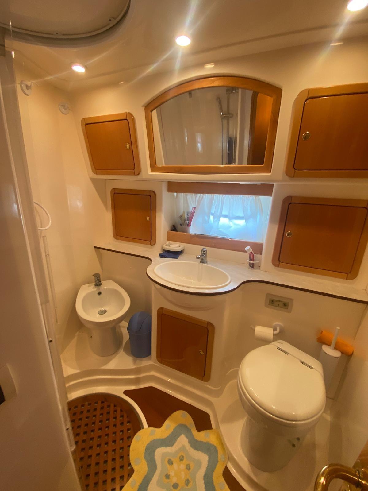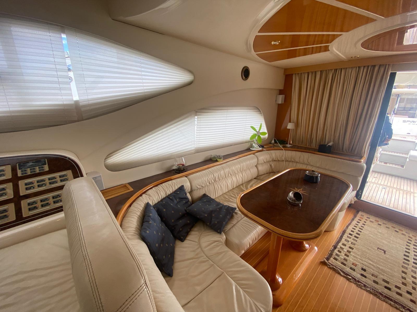 Fume/Gas Detector, Engine Alarm, Bilge Alarm, Water pressure pump, Deck Shower, Directional Spotlight, Electric Flaps, Fire Extinguishing System, Flaps Indicators, Gangway, Platform, Automatic Bilge Pump, Manual Bilge Pump, Teak Cockpit, Shorepower connector, Water harbor connector system, Electric Windlass, swimming ladder, Saddles for tender, Tender, Horn, Stern Winches, Bow Winches.