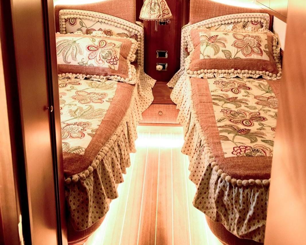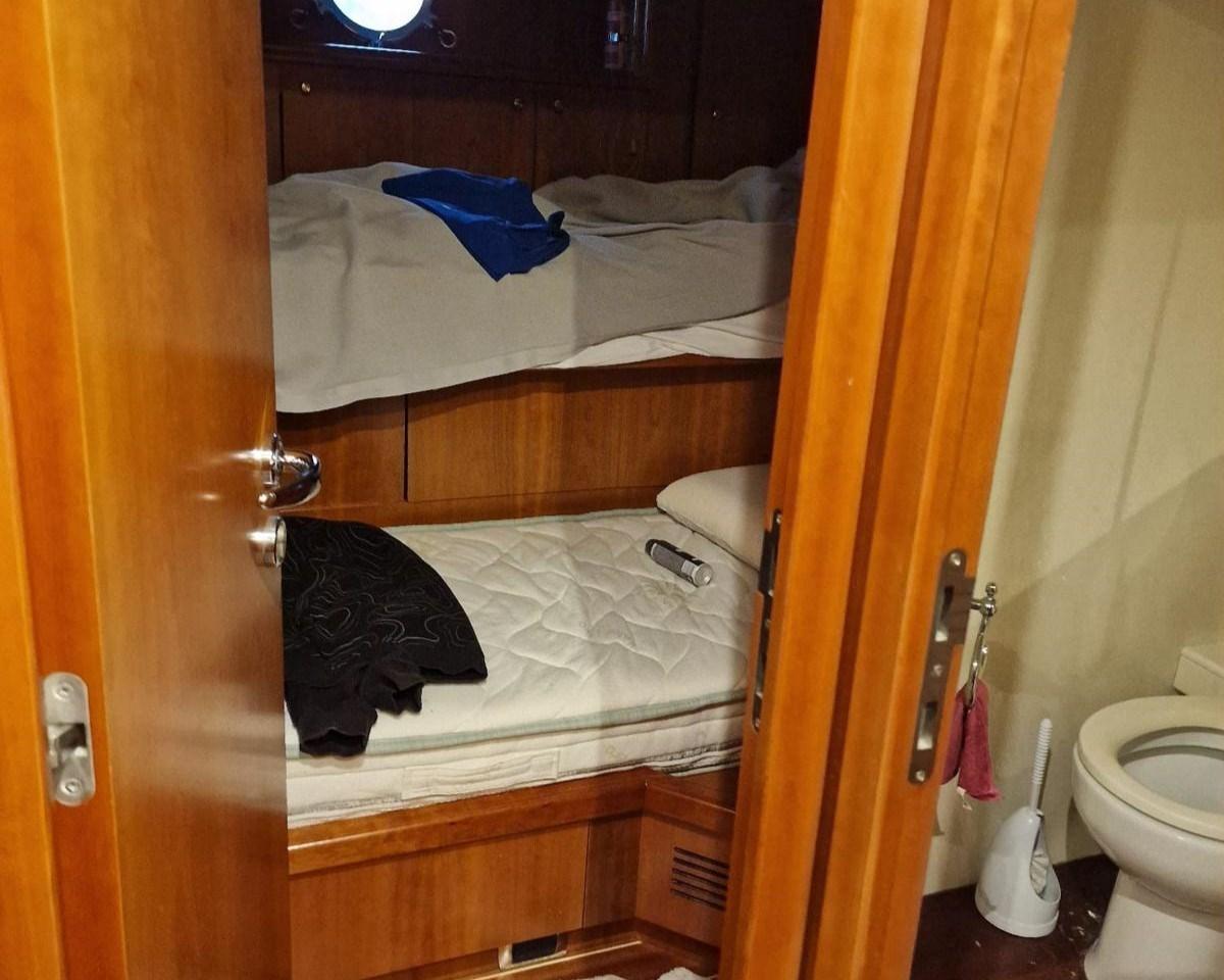 Engine Alarm, Bilge Alarm, Water pressure pump, Teak Side Decks, Deck Shower, Directional Spotlight, Hydraulic Flaps, Tender Garage, Hard top, Fire Extinguishing System, Washbasin in the cockpit, Courtesy Lights, Gangway (IDRAULICA), Platform (TEAK), 6 Automatic Bilge Pump, Teak deck, Entry door, Teak Cockpit, Shorepower connector, Water harbor connector system, Voltage Rectifier, Electric Windlass, swimming ladder, cockpit table, Tender, 2 Stern Winches.