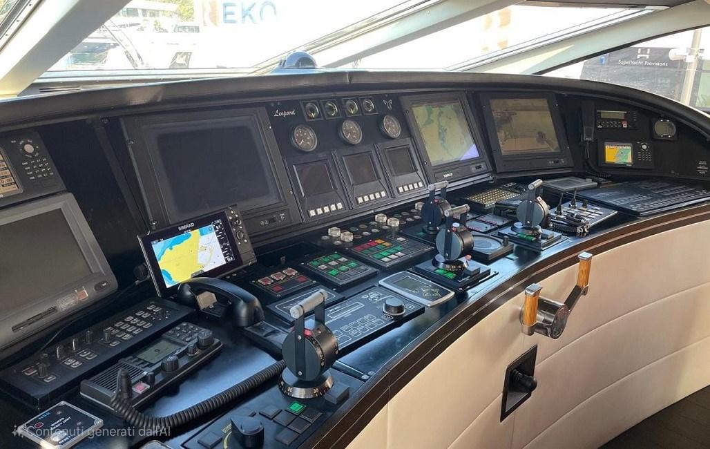 AIS, Rudder angle indicator, Radar Antenna, Electronic engine control, On-Board Computer, Chain counter, Display, DSC vhf, Plotter with GPS antenna, Co-pilot seat.