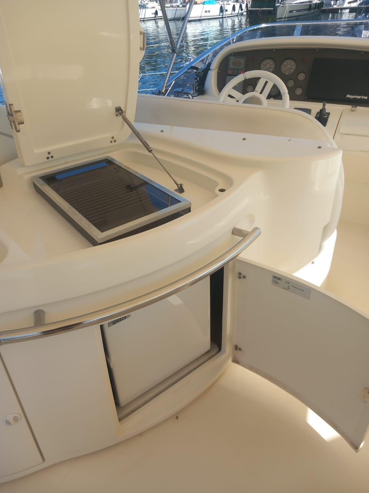 Fume/Gas Detector, Engine Alarm, Bilge Alarm, Water pressure pump, Deck Shower, Hydraulic Flaps, Fire Extinguishing System, Flaps Indicators, Anchor Chain Washdown, Courtesy Lights, Underwater lights, Gangway, Platform, Automatic Bilge Pump, Manual Bilge Pump, Teak Cockpit, Shorepower connector, Hydraulic Windlass, swimming ladder, Horn, Stern Winches.