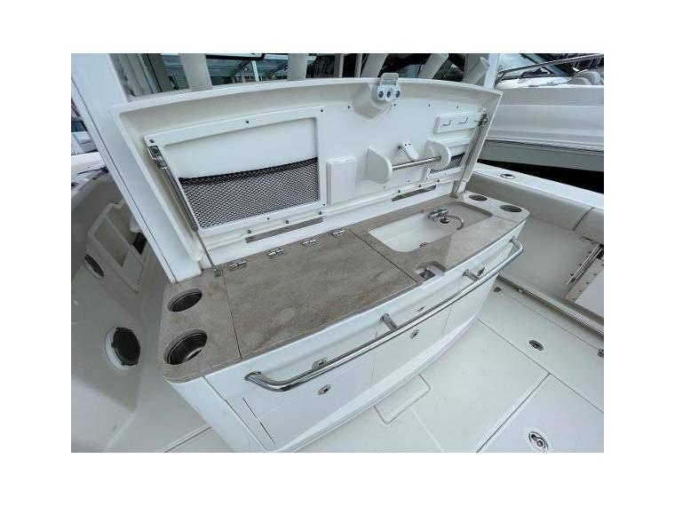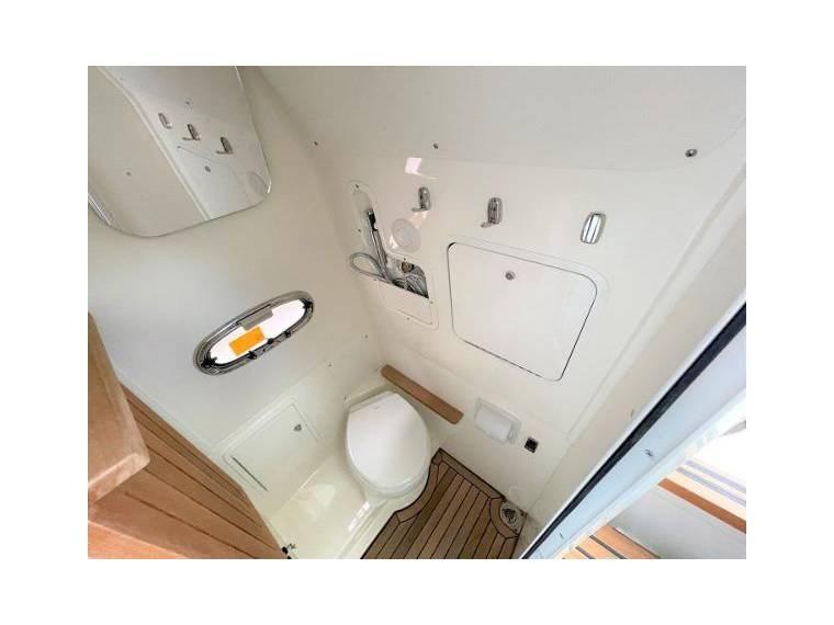 Engine Alarm, Bilge Alarm, Anchor (in acciaio), Water pressure pump, Auto-Trim, Folding cleats, Deck Shower, Directional Spotlight, Electric Flaps, Washbasin in the cockpit, Courtesy Lights, Automatic Bilge Pump, Manual Bilge Pump, Shorepower connector, Water harbor connector system, Electric Windlass, swimming ladder, cockpit table (e Tavolo prua elettrico), Horn.