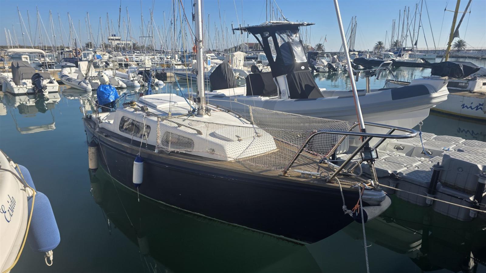 This small cabin cruiser is just under seven metres long and boasts the paternity of the Dutch designer Van de Stadt.