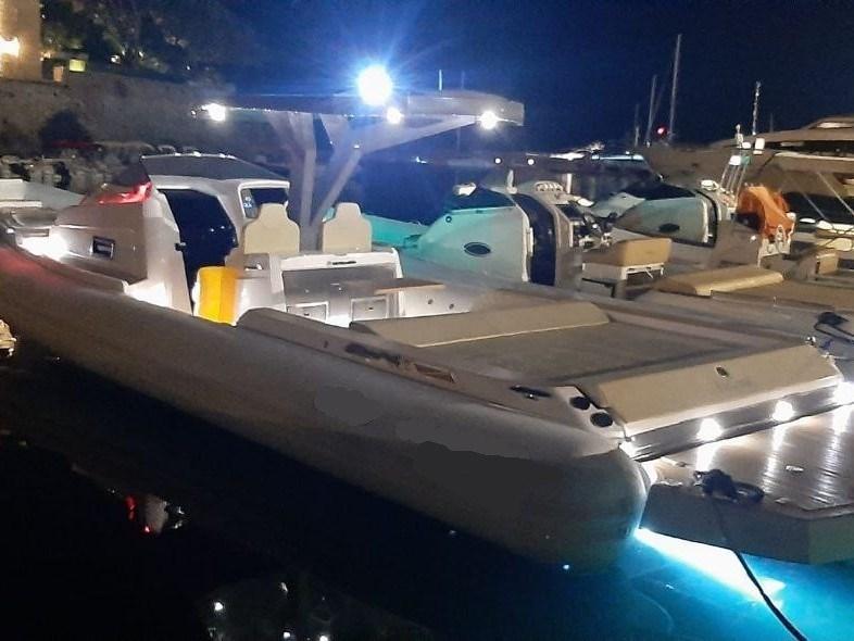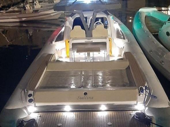 Anchor (acciaio inox), Water pressure pump (con polmone), Teak Side Decks, Deck Shower, Bow Thruster (180 mm), Courtesy Lights, Underwater lights (poppa), Platform (in Teak), 2 Automatic Bilge Pump, Teak Cockpit, Electric Windlass, swimming ladder (Inox a scomparsa con gradini in Teak), cockpit table (abbattibile in Teak), Horn, T-Top (in fibra di vetro con luci led).