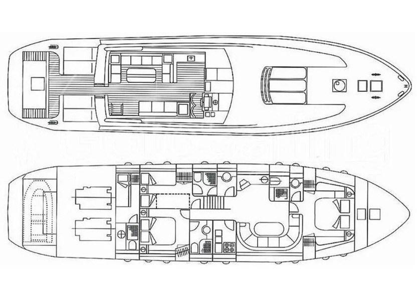 Electric bow thruster - electro-hydraulic gangway - tender garage - washing machine - audio system - SAT TV antenna - TV antenna - LCD TV in the saloon, cabins, outdoor dinette - dishwasher - generators - air conditioning - fridge - freezer - oven - electric 4-burner hob - wet bar in cockpit with sink and fridge - ice maker - watermaker - battery charger - fridge system - tender with outboard.