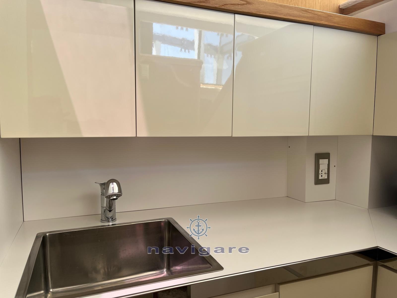 at anchor, main features, hydraulic gangway, latest generation Raymarine, bow thruster, steel fridge with ice maker