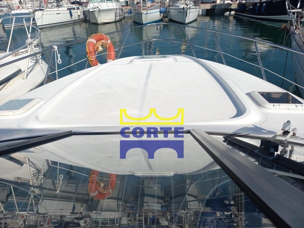 Fume/Gas Detector, Engine Alarm, Water pressure pump, 4 Batteries (servizi), Deck Shower, Electric Flaps, Fire Extinguishing System, Washbasin in the cockpit, Courtesy Lights, Solar panels, Platform (allungata in teak sintetico con fuga bianca 2024), Automatic Bilge Pump, Entry door, Teak Cockpit (sintetico con fuga bianca 2024), Shorepower connector, Electric Windlass, swimming ladder (con maniglia), cockpit table (trasformabile in prendisole), Bow Winches.
