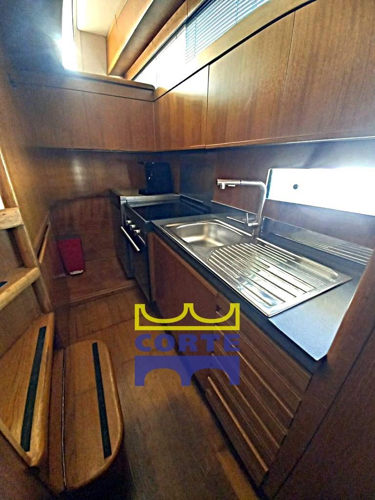 Kitchen with ceramic hob, oven, large granite worktop, fridge/freezer of 280 litres and convenient access to the sailor's cabin,