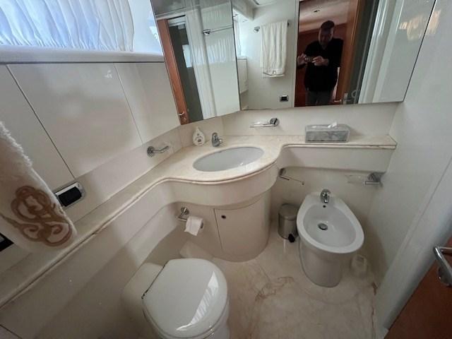 Fume/Gas Detector, Engine Alarm, Bilge Alarm, Alternator, Water pressure pump, Teak Side Decks, Shore power cable, Guard rail, Deck Shower, Twin Steering, Directional Spotlight, Hydraulic Flaps, Crane, Fire Extinguishing System, Anchor Chain Washdown, Courtesy Lights, Gangway, Platform, Automatic Bilge Pump, Manual Bilge Pump, Teak deck, Entry door, Side door, Teak Cockpit, Voltage Rectifier, Rollbar, Electric Windlass, Gang Board, swimming ladder, Saddles for tender, cockpit table, guard rails with gates, Horn, Stern Winches, Bow Winches.