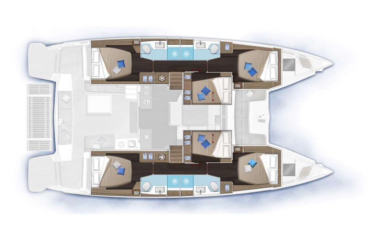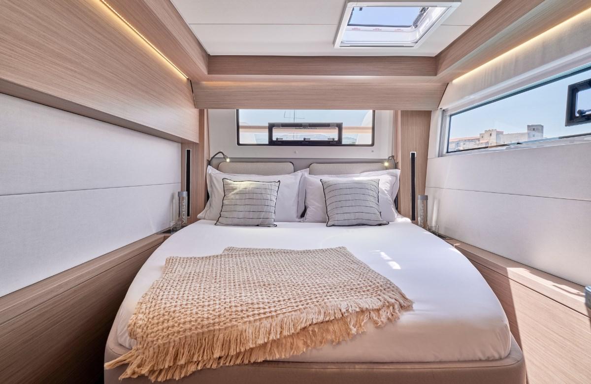 For the Lagoon 51, already equipped with walkable solar panels even in the standard version, it allows a further addition of XXL solar panels on the deckhouse. This technology provides over 3400 watts of power to run all onboard services. The new Lagoon 51 is therefore completely autonomous (except for air conditioning). The solar panels integrate perfectly into the lines of the catamaran and do not disturb life on board. The flybridge and sundecks on the deckhouse are accessible and usable both in the presence and absence of solar panels.