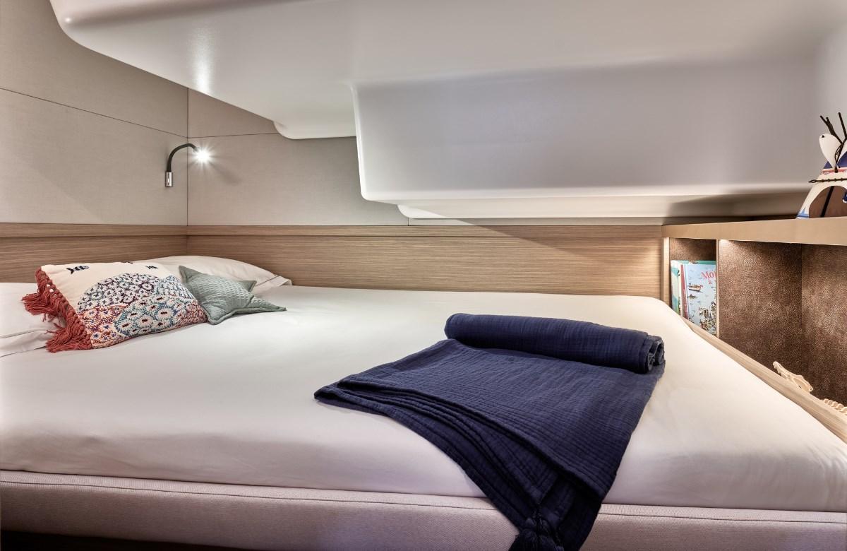 The first novelty of all are the optimised outdoor spaces: the flybridge of the Lagoon 51 is innovative for the modularity of its spaces, the ingenious ergonomics and the comfort of this large convivial space. The flybridge has been reformulated to occupy 80% of the deckhouse with 2 beautiful sundecks forward of the wheelhouse and a large area with C-shaped seating, in which the central table can be lowered to create an XL sundeck.