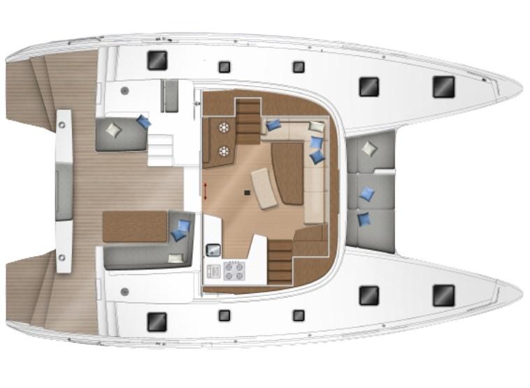 Connecting the interior and the ocean, the aft cockpit of the Lagoon 42 Millenium multiplies the relaxation areas. Its versatility allows you to have a large table that can accommodate up to ten guests while maintaining good circulation in the cockpit