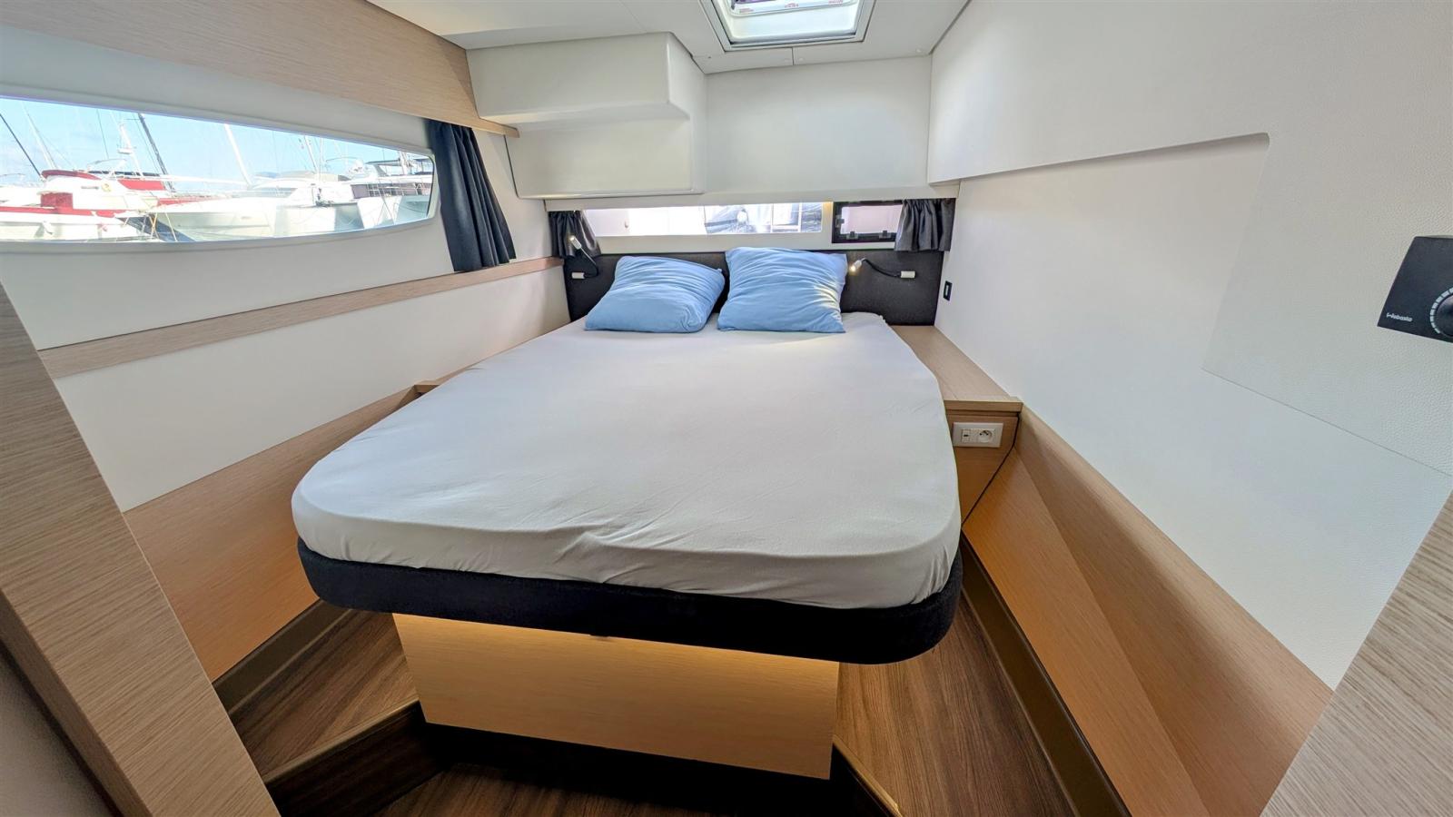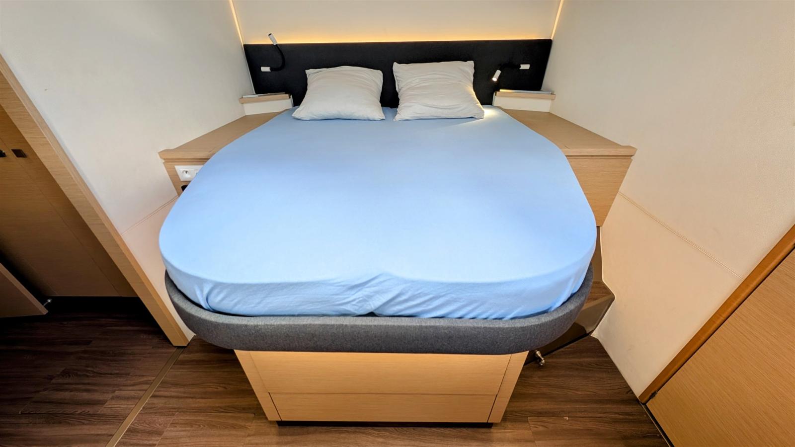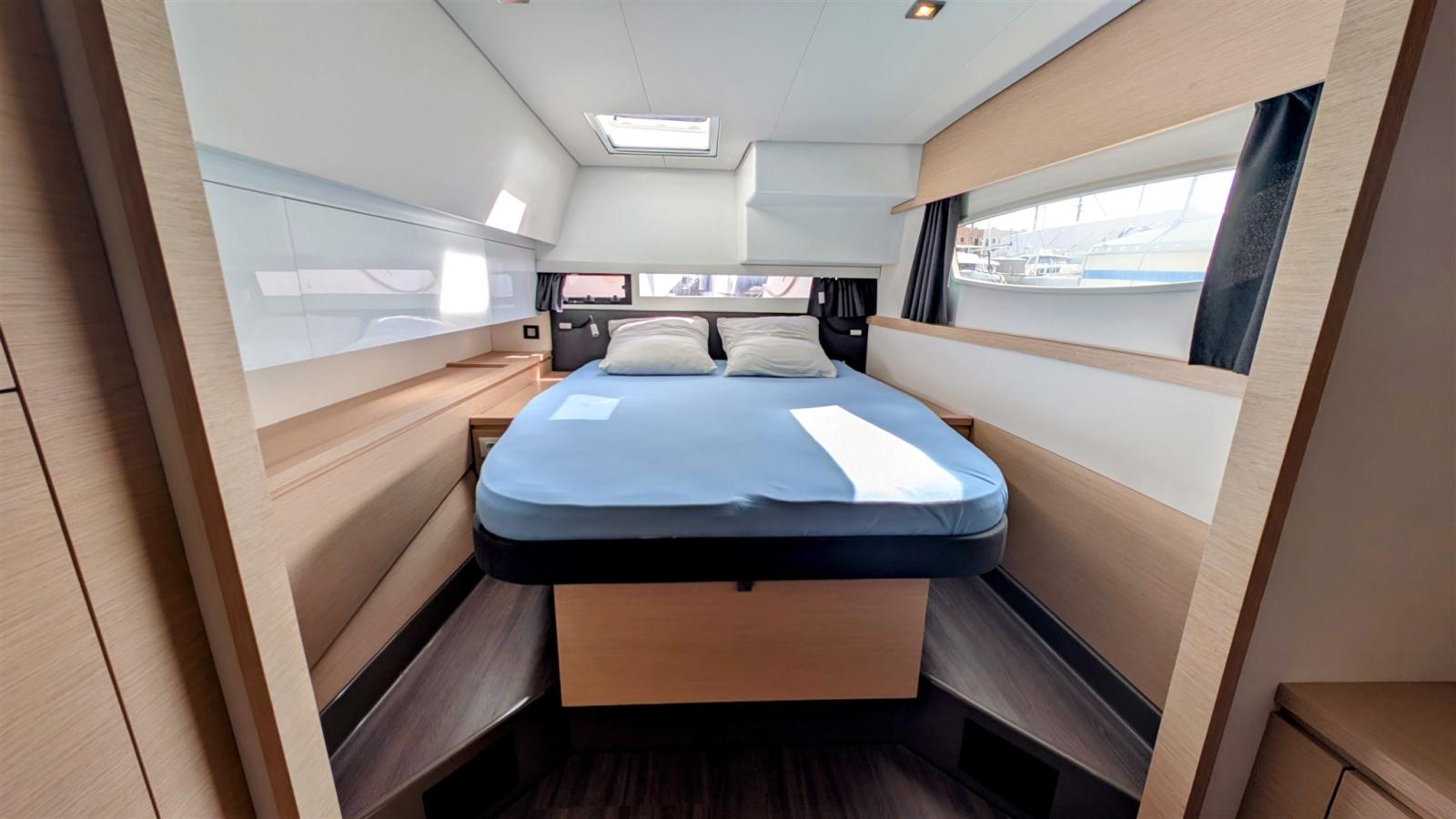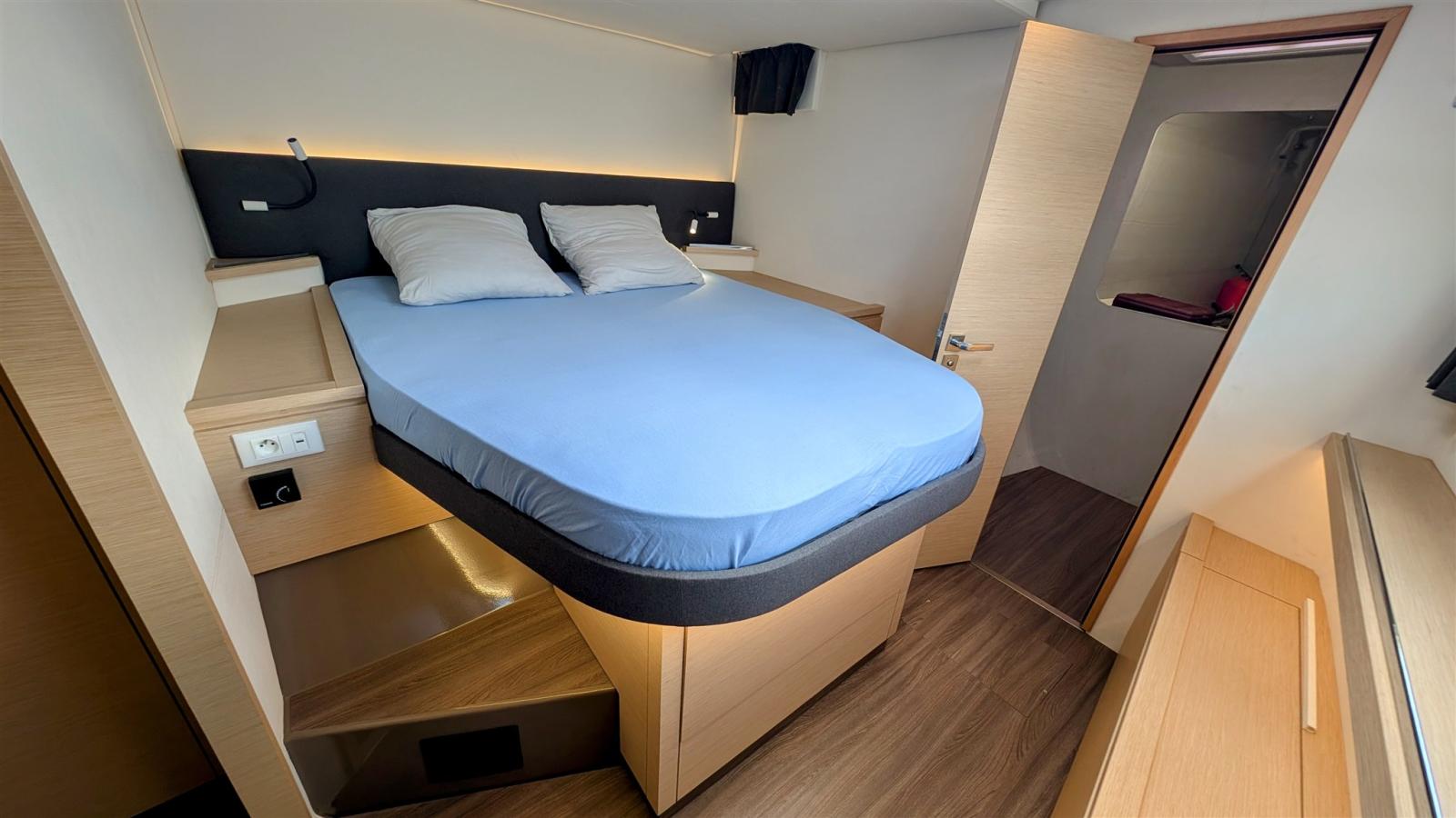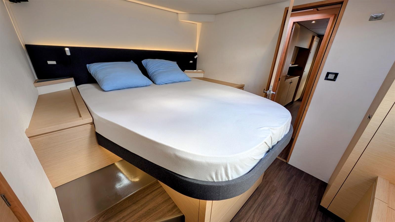 Designed by the Fountaine Pajot shipyard, the Saba 50 embodies the balance between comfort, performance and long range when cruising. Its panoramic saloon, spacious cockpit and flybridge offer bright and friendly living spaces. The cabins, which are particularly spacious, have plenty of storage space and contribute to the comfort on board, complemented by a technical and storage room on the port bow.