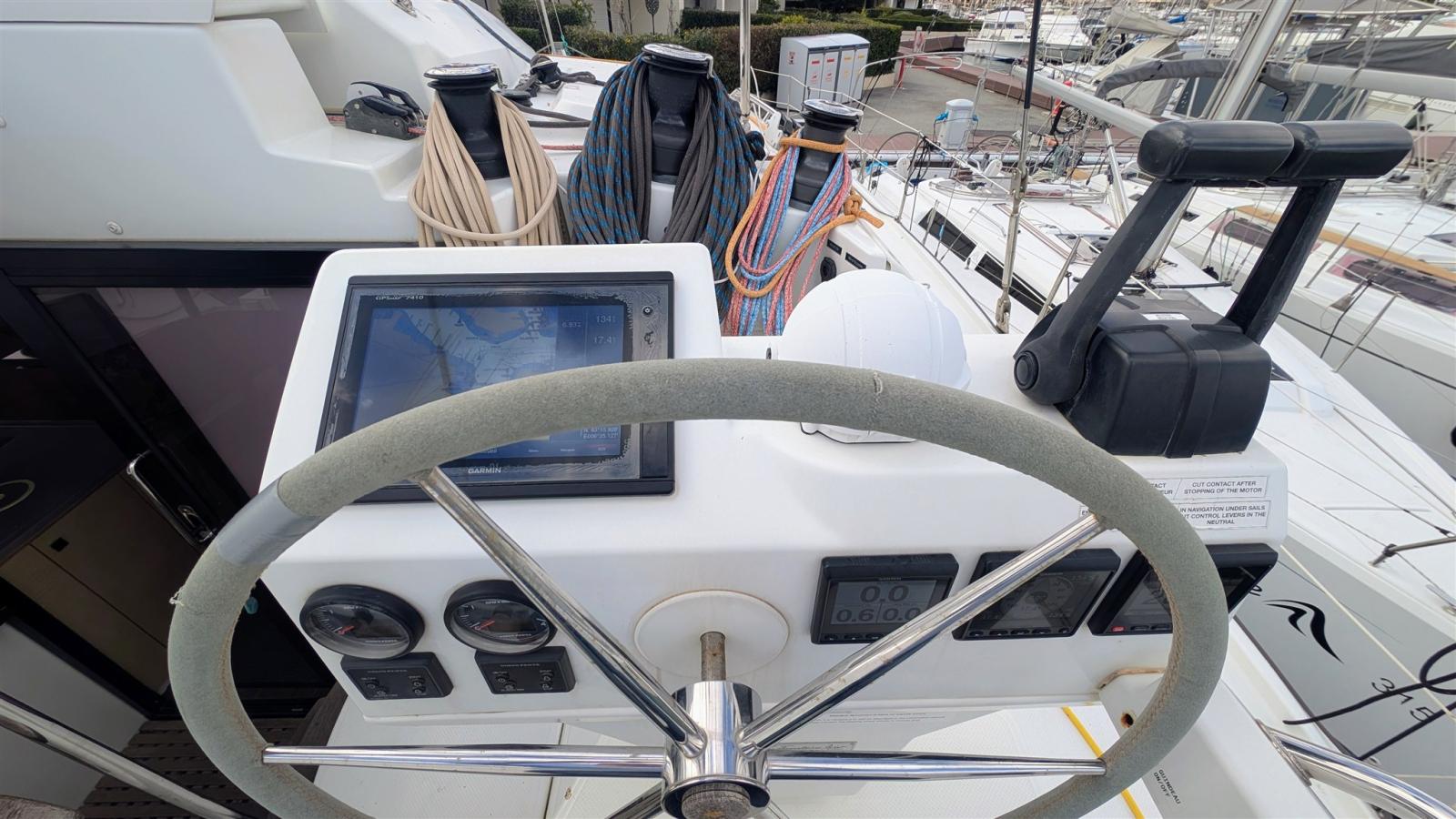 AIS (Garmin), Rudder angle indicator, Chain counter, DSC vhf (Garmin), Epirb (EPIRB), GPS (Garmin), Maps and guides, 2 Chartplotter (Garmin), Control panel, Radar (Garmin), VHF Radio (Garmin), Sonar (Garmin).