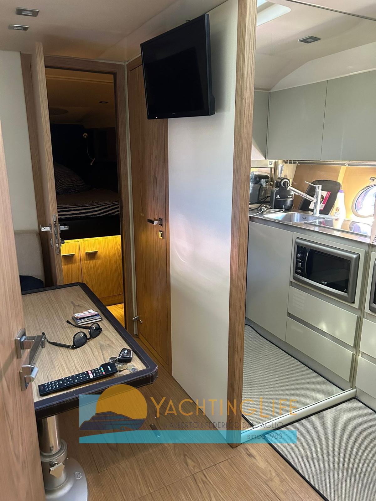 Engine Alarm, Bilge Alarm, Water pressure pump, Deck Shower, Electric Flaps, Hard top, Fire Extinguishing System, Flaps Indicators, Washbasin in the cockpit, Courtesy Lights, Gangway (manuale a scomparsa), Platform, Automatic Bilge Pump, Teak Cockpit, 2 Shorepower connector (di cui una solo per aria condizionata), Electric Windlass, swimming ladder, cockpit table, Horn.