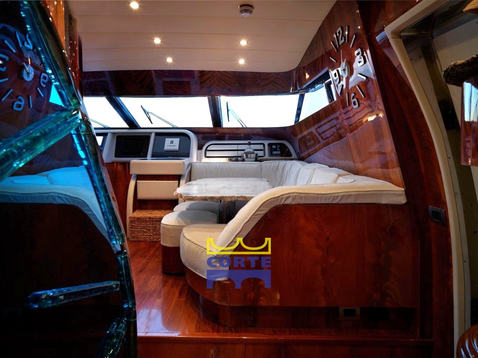 Radar Antenna, Compass (a chiesuola Riviera), Electronic engine control, On-Board Computer, Odometer (Raymarine), Display, 3 Depth Sounder (N° 1 Furuno, N° Raymarine in plancia e fly), Log (Raymarine), 2 Autopilot (Navicontrol in plancia e fly), 2 Plotter with GPS antenna (Raymarine cartografico touchscreen in plancia e fly), Radar (Furuno), 2 VHF Radio (fissi), Co-pilot seat.