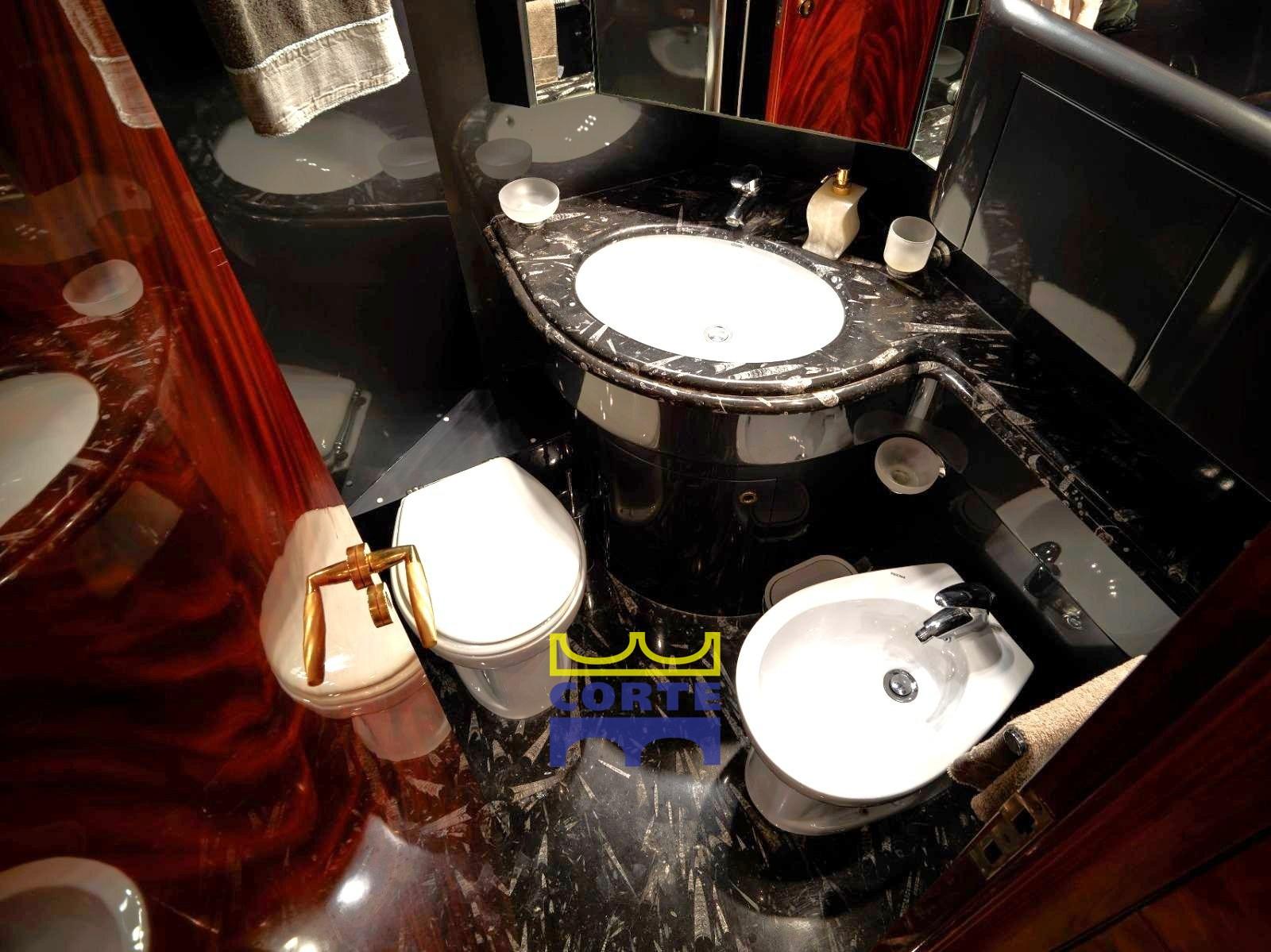 2 Warm Water System (80 lt ciascuno), Inverter Air Conditioning, Watermaker (Idromar 180 lt), Waste Water Plant, 2 Inverter (ZF 230V), 12V Outlets, 220V Outlets, Black Water Tank, 2 Video camera (vano motori e pozzetto con monitor in plancia recente), 4 Electric Toilet (Tecma).