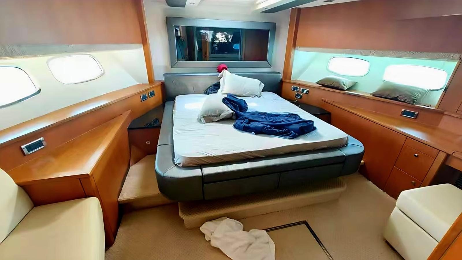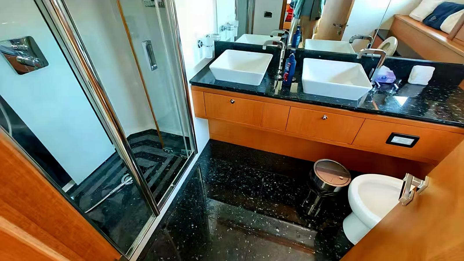 Spacious full-beam master cabin, with double bed and en-suite bathroom with shower cubicle