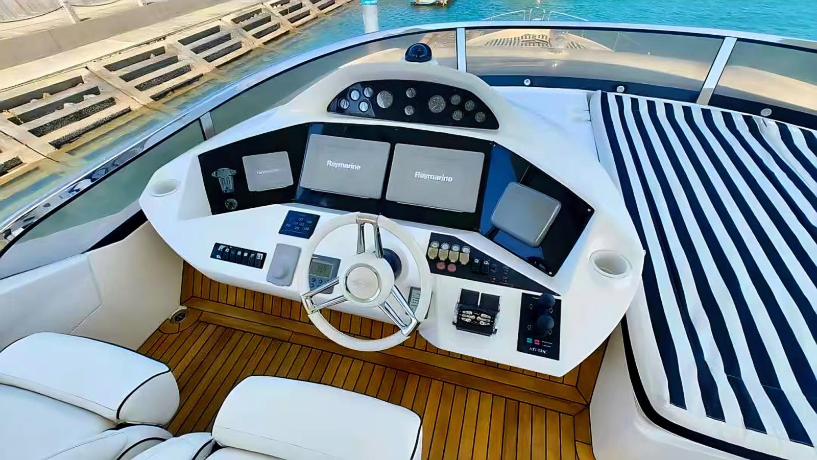 Rudder angle indicator, Electronic engine control, On-Board Computer, Chain counter, Display, Consumption monitor, Plotter with GPS antenna, Control panel, Co-pilot seat.