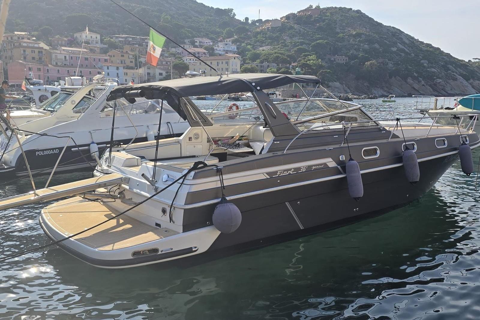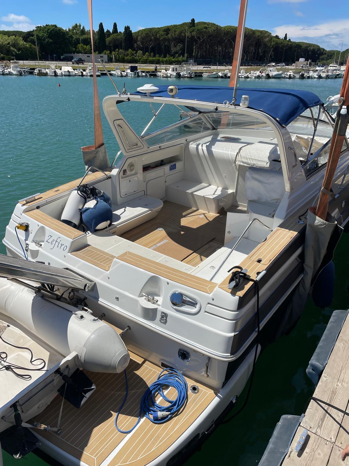 Fume/Gas Detector, Engine Alarm, Bilge Alarm, Alternator, Electric Engine Compartment Opening, Water pressure pump, 3 Batteries, Teak Side Decks (FLEXITECHT), Special Colour, Deck Shower, Electric Flaps, Fire Extinguishing System, Flaps Indicators, Washbasin in the cockpit, Courtesy Lights, Underwater lights, Outboard engine for tender, Fenders, Gangway, Platform, 3 Automatic Bilge Pump, Manual Bilge Pump, Teak deck, Teak Cockpit, Shorepower connector, Water harbor connector system, Rollbar, Electric Windlass, swimming ladder, Saddles for tender, cockpit table (ELETTRICO), Tender (ARIMAR CHIGLIA RIGIDA 2,5), Horn, Teak Deckhouse, Winch, Winch Hydraulic.