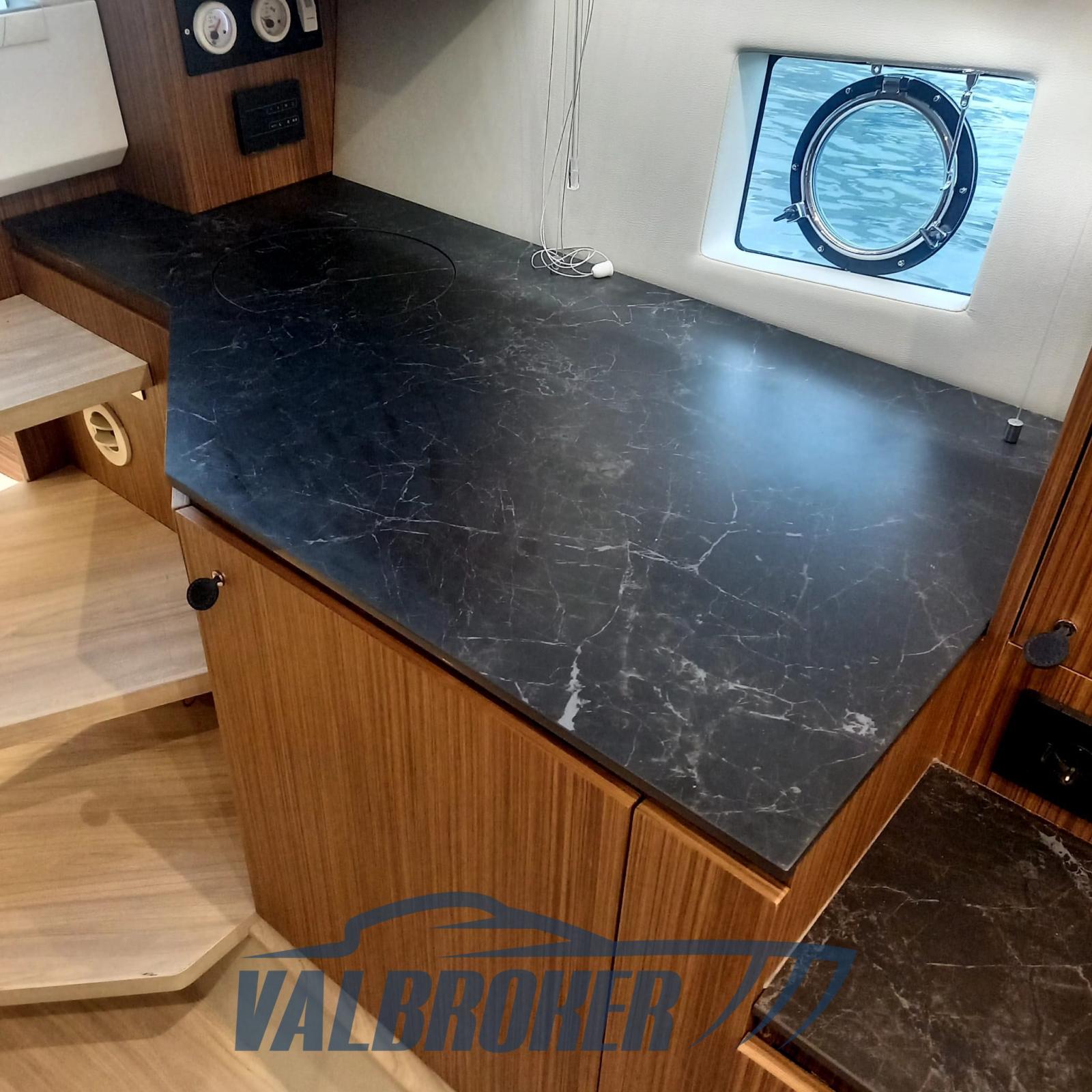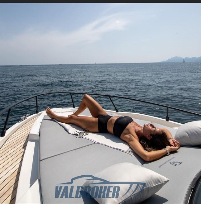 Dashboard with carbon effect, trim correctors Zipwake Dynamic Trim System, generator preparation, manhole that can be opened at the bow, windshield closure on 3 sides, cushion cover, cushion kit for transformation dinette bow and stern