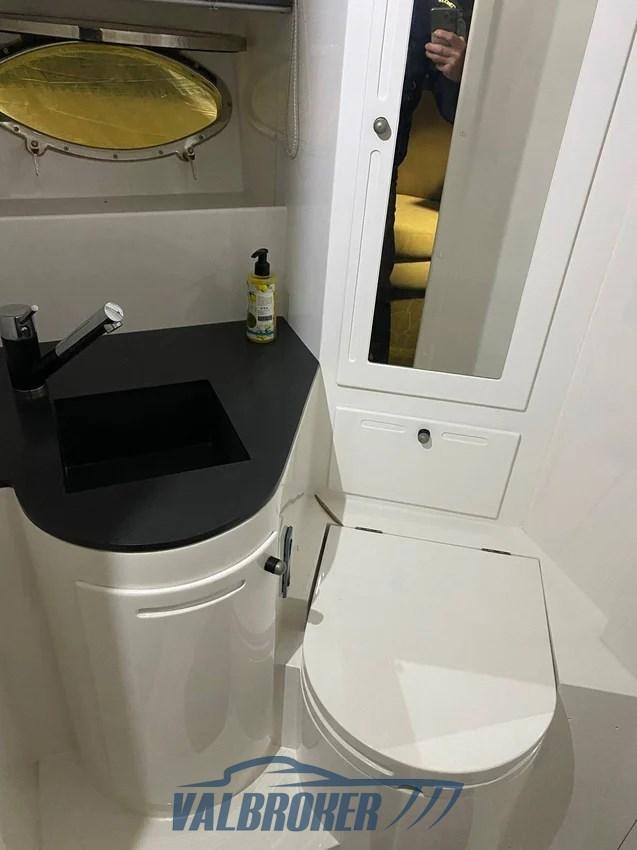 Water pressure pump, Deck Shower, Bow Thruster (Vetus), Fire Extinguishing System, Washbasin in the cockpit, Platform (teak), Automatic Bilge Pump, Shorepower connector, Rollbar, Electric Windlass, swimming ladder, Horn.