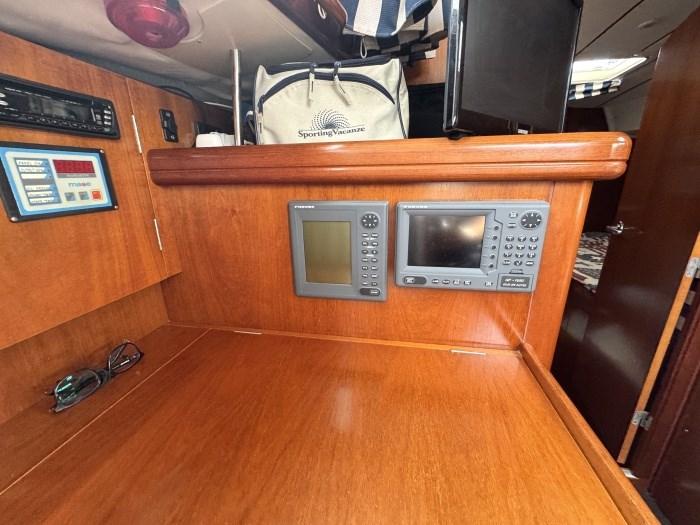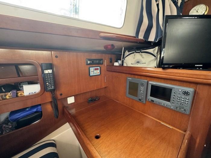 Rudder angle indicator, Radar (da riparare), VHF Radio (+ 1 portatile), Wind Station (B & G).