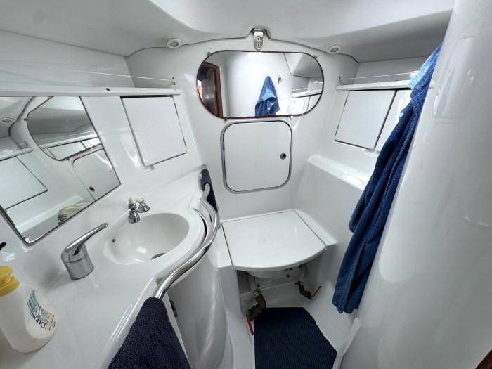 safety annotations until 6/2028; teak deck ; rocket; reheating and radar to be repaired; SAILS : mainsail, genoa, furling staysail with electric winch; Jet-Prop propeller; salt water foot pump; tender 240 and FB Honda 2 HP 4-stroke; mediation of 5% + VAT 22% to be paid by the buyer (VAT is calculated on the amount of the mediation).