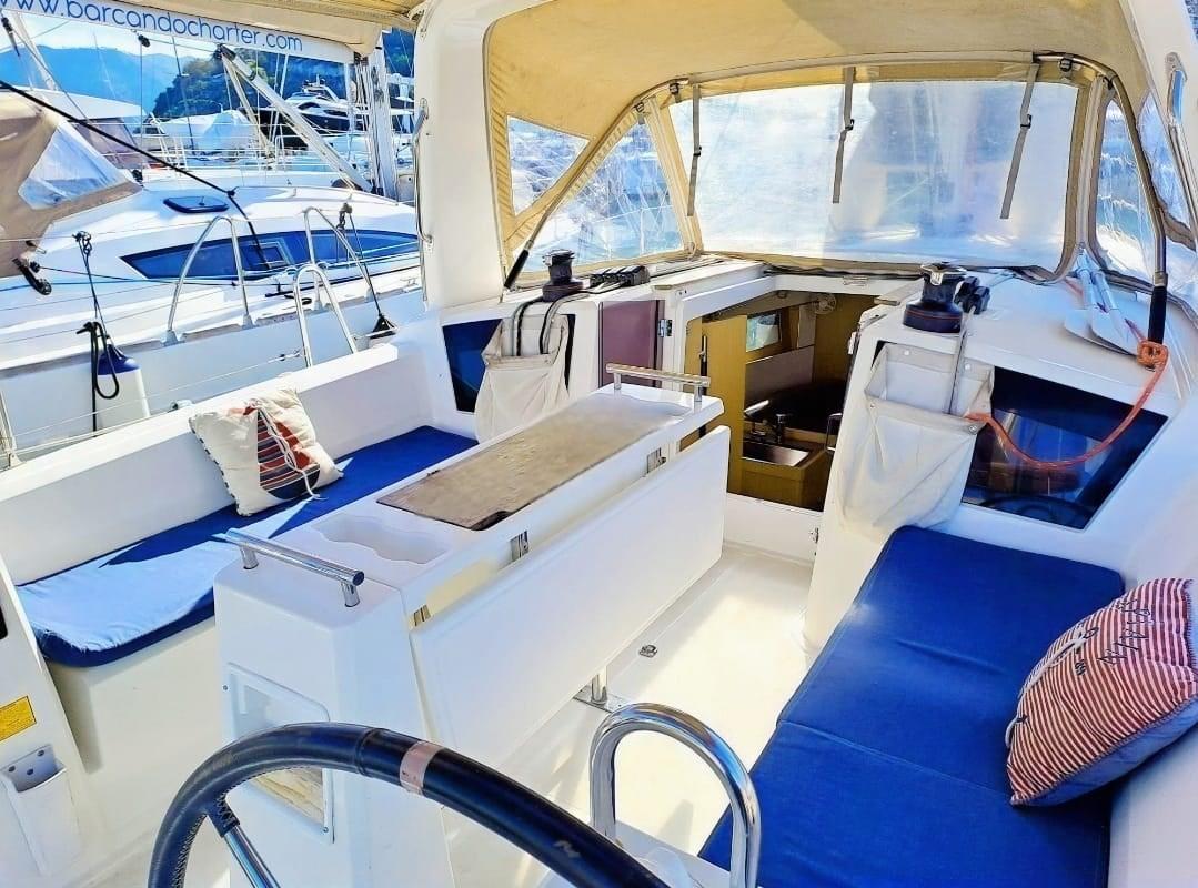 Engine Alarm, Water pressure pump, Deck Shower, Fenders, Platform, Manual Bilge Pump, Shorepower connector, Rollbar, Electric Windlass, cockpit table, Tender.
